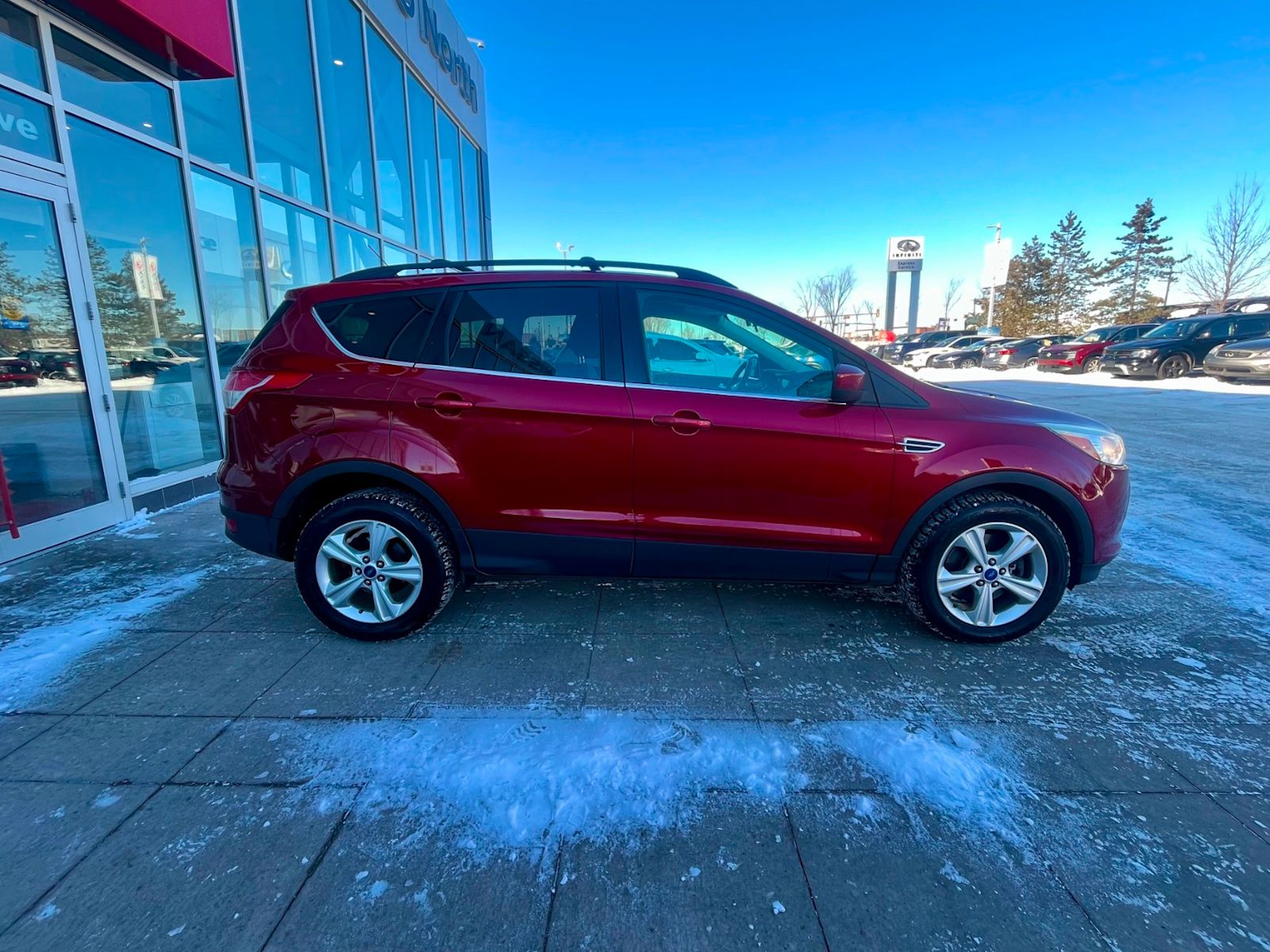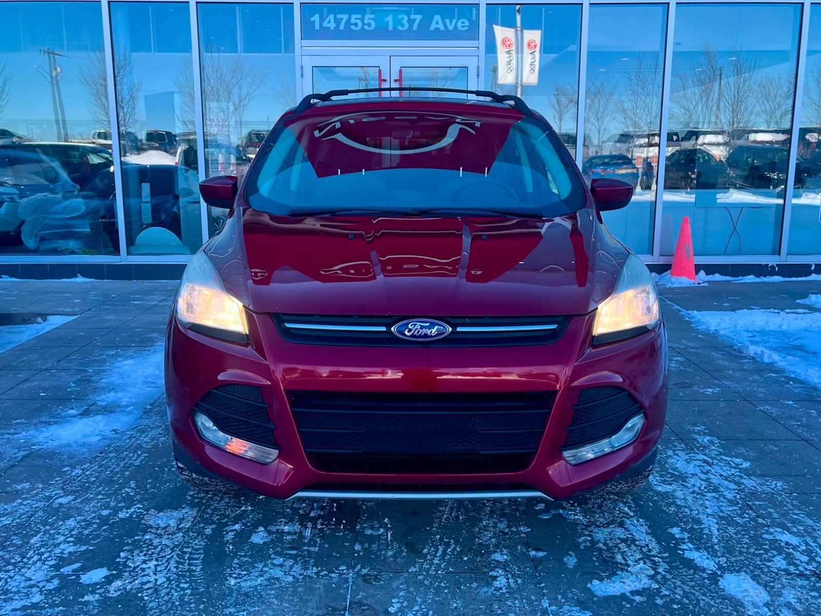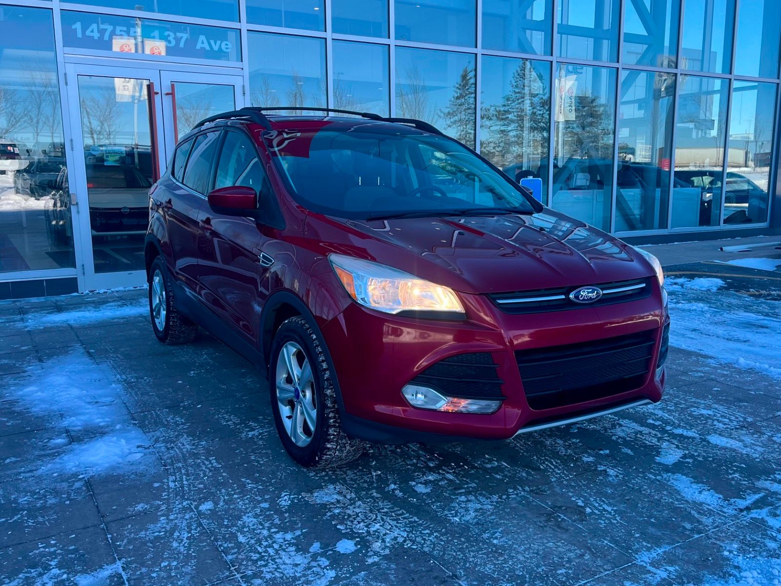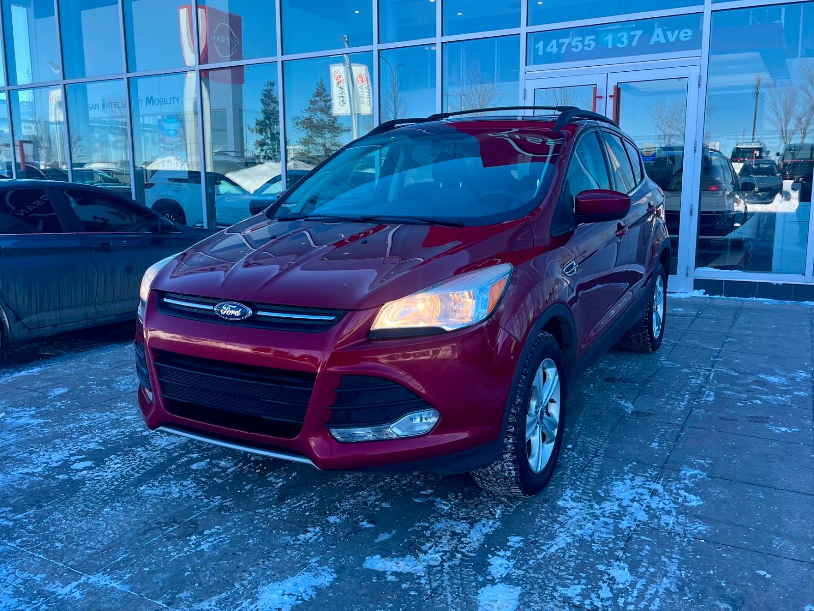 Discover the perfect blend of style, performance, and versatility with this pre-owned 2013 Ford Escape SE 4WD in striking Ruby Red Metallic. Featuring a fuel-efficient 1.6L GTDI EcoBoost engine paired with a smooth 6-speed SelectShift automatic transmission and full-time 4WD, this SUV is ready for any adventure. Enjoy heated cloth seats, black interior, and advanced SYNC with MyFord Touch for seamless connectivity. Equipped with roof rack crossbars, a tonneau cover, and an impressive cargo management system, it’s built for your active lifestyle. Safety is paramount with 7 airbags, electronic stability control, and all-speed ABS. Experience comfort, capability, and confidence all in one reliable package—come test drive this Escape today! *AMVIC LICENSED BUSINESS