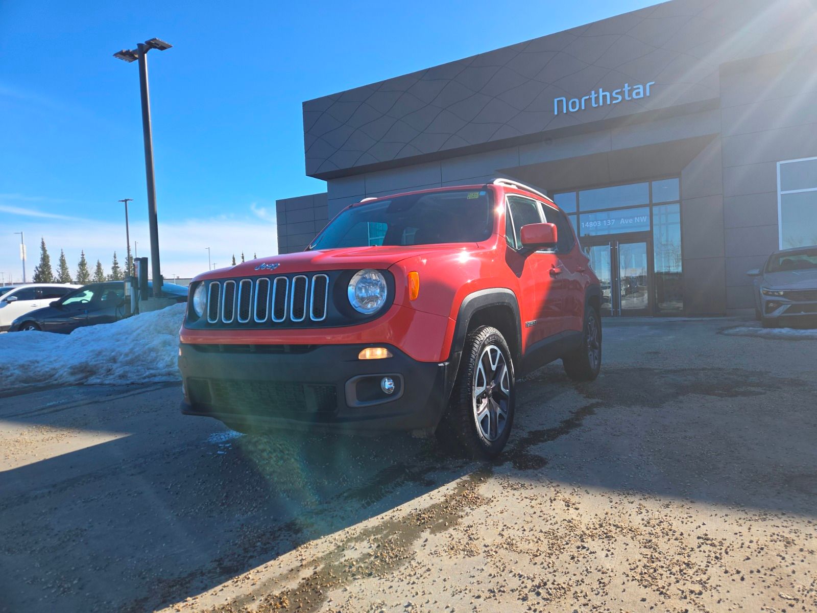 Discover adventure-ready style with this pre-owned 2016 Jeep Renegade North 4WD in striking Omaha Orange with a sleek black interior. Powered by a 2.4L Tigershark MultiAir I-4 engine paired with a smooth 9-speed automatic transmission and full-time 4WD, it’s built for confidence on any terrain.Enjoy modern comforts like heated front seats, heated steering wheel, and Cold Weather Group features, plus convenience with Keyless Enter ’n Go and Remote Start. Safety is paramount with ParkView Rear Back-Up Camera, stability control, and seven airbags.Stay connected and entertained with Uconnect 5.0″ touchscreen radio, voice-activated controls, and Bluetooth streaming. With versatile cargo space, multi-level cargo floor, and rugged all-season mats, this Renegade balances daily practicality with Jeep’s trademark capability.Ready for your next journey? Visit Northstar Hyundai today and experience the perfect blend of style, comfort, and off-road readiness with this stunning 2016 Jeep Renegade North!AMVIC Licenced business Interested? Need more information? Contact our Internet sales team at info@northstarhyundai.ca, call us at 780-478-7669, or come on in! Northstar Hyundai is located at 14803 137 Ave NW, Edmonton, AB, right on the corner of 137 Ave and St. Albert Trail… you can’t miss us! We are proud to serve Edmonton and the rest of Alberta for 35 years and counting!This vehicle may be leased or financed by anyone*, however, due to the recent increase in fraudulent vehicle purchase activity, Northstar Hyundai reserves the right to decline any form of payment, including but not limited to cash, bank draft, certified cheque, EFT, or credit card. *on approved credit, see dealer for details.