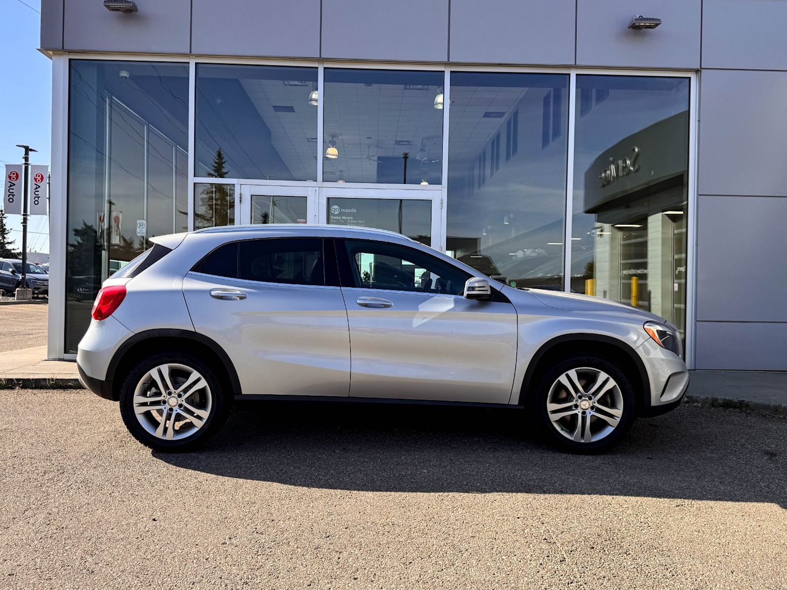 Plus Taxes & LicensingLook great and feel even better behind the wheel of our 2017 Mercedes-Benz GLA 250 that looks incredible in Polar Silver Metallic! It’s powered by a Turbocharged 2.0 Liter 4 Cylinder engine that produces 208 horsepower while paired with a smooth-shifting 7-Speed Automatic transmission. Sensual curves are enhanced by the exterior features that include 5 spoke 18″ alloy wheels, roof rails, LED lights and dual sport exhaust. Inside our GLA 250, find an upscale cabin that has driver memory seat settings, settle into leather front heated seats, grip the leather-wrapped steering wheel with mounted audio/cruise controls/paddle shifters and look up to see a dual-pane sunroof! It also has navigation, keyless ignition, direct start/eco start/stop function, silver interior accents, and automatic climate control. Our Mercedes-Benz gives you peace of mind with an assortment of safety features including a back-up camera, blind-spot assist, collision warning with active braking, attention assist (drowsiness detection) stability/traction control, 4-Wheel anti-locking braking system, dusk sensing headlights, a multitude of airbags and more! Print this page and call us Now… We Know You Will Enjoy Your Test Drive Towards Ownership! We look forward to showing you why Go Mazda is the best place for all your automotive needs.Go Mazda is an AMVIC licensed business. Please note: this vehicle has been previously registered in the province of Québec and Ontario