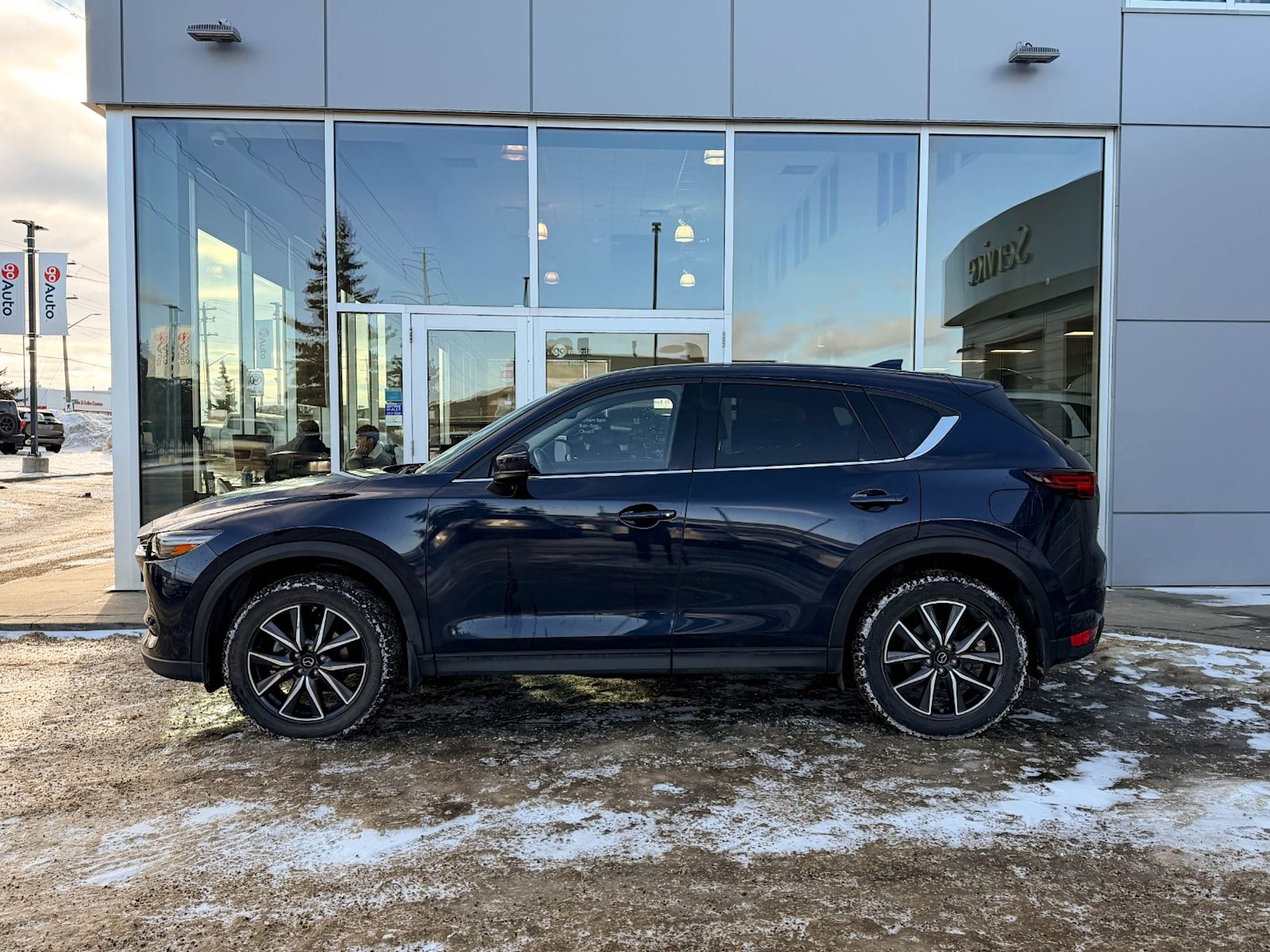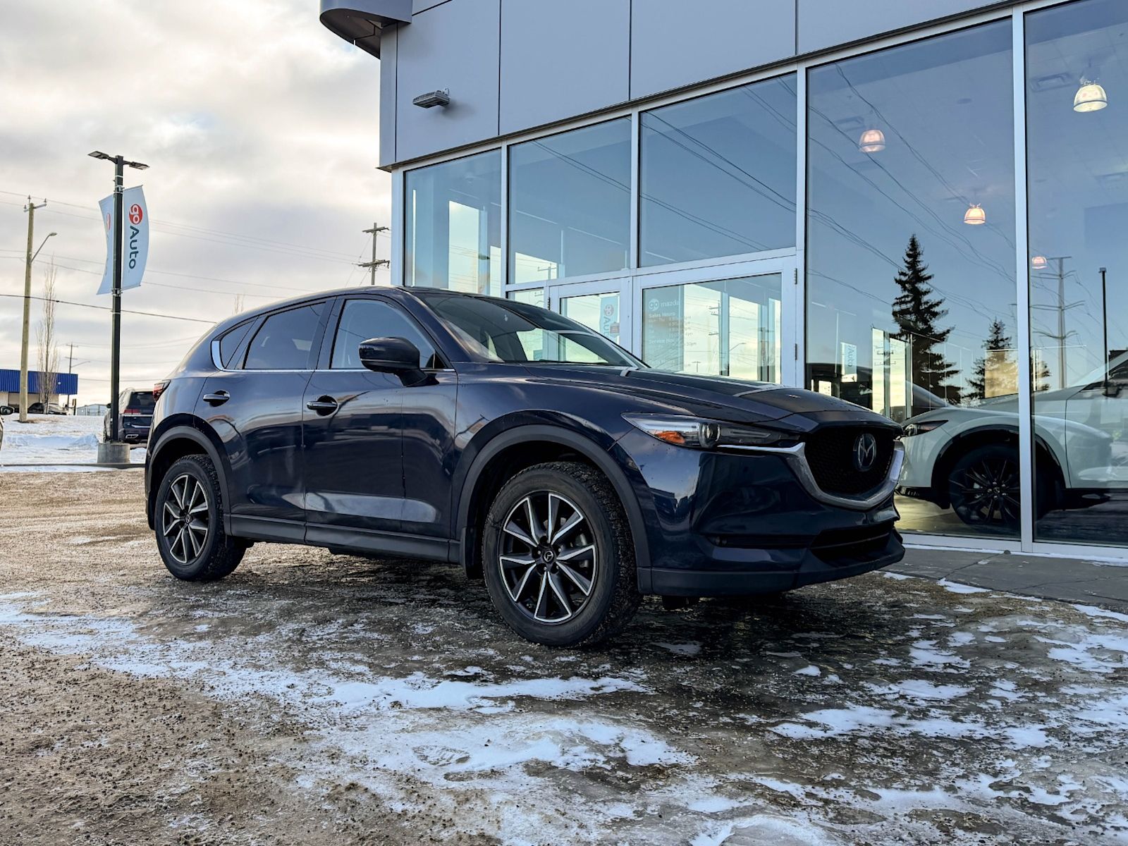 Discover the perfect blend of style, performance, and luxury with this pre-owned 2018 Mazda CX-5 GT AWD in sleek Deep Crystal Blue Mica. Powered by a 2.5L SKYACTIV-G 4-cylinder engine paired with a smooth 6-speed automatic transmission, it delivers responsive handling and efficient fuel economy. Enjoy added confidence year-round with automatic full-time AWD.Inside, indulge in heated leather front seats, dual-zone automatic climate control, and a premium Bose audio system with navigation—all designed for comfort and convenience. Advanced safety features include blind-spot monitoring, rear collision warning, and a rearview camera for peace of mind on every drive.With its refined exterior featuring 19″ machined alloy wheels, LED headlights, and a power liftgate, this CX-5 GT is as practical as it is stylish. Don’t miss your chance to own a versatile SUV that elevates every journey—contact us today to schedule your test drive!Vehichle has a $2519 claim on the Carfax history repportGo Mazda is a AMVIC licenced buisness