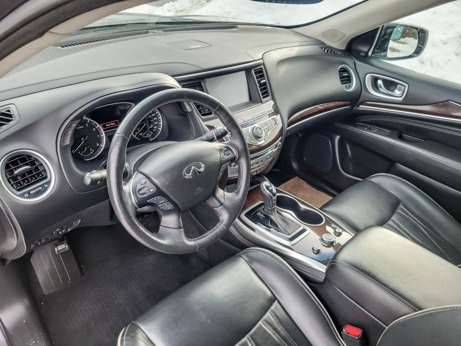 Plus Taxes & LicensingDiscover reliable luxury with this pre-owned 2019 INFINITI QX60 PURE- ProACTIVE, DVD, HEATED/COOLED SEATS, WINTER&SUMMER TIRES AWD, a perfect blend of performance, comfort, and versatility. Powered by a smooth 3.5L V6 Direct Injection engine paired with a Continuously Variable Transmission, it delivers responsive handling and efficient driving. Enjoy the confidence of full-time AWD and advanced safety features like Forward Collision Mitigation and Pedestrian Impact Prevention, perfect for all weather conditions.Inside, experience comfort with heated front seats, leatherette seating surfaces, and spacious 7-passenger seating with dual-zone climate control to keep everyone comfortable. The 8-inch touchscreen with voice-activated audio controls and Bluetooth connectivity keeps you connected on the go. With practical amenities like a power liftgate, multiple storage compartments, and a trailer hitch with Class III tow rating, this QX60 is as versatile as it is luxurious.Drive with peace of mind backed by thorough safety systems, stylish design details, and premium convenience features. Contact Go Infiniti South today to schedule your test drive and elevate your daily drive with the 2019 INFINITI QX60 PURE AWD.