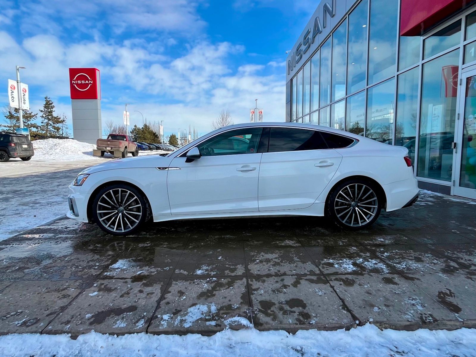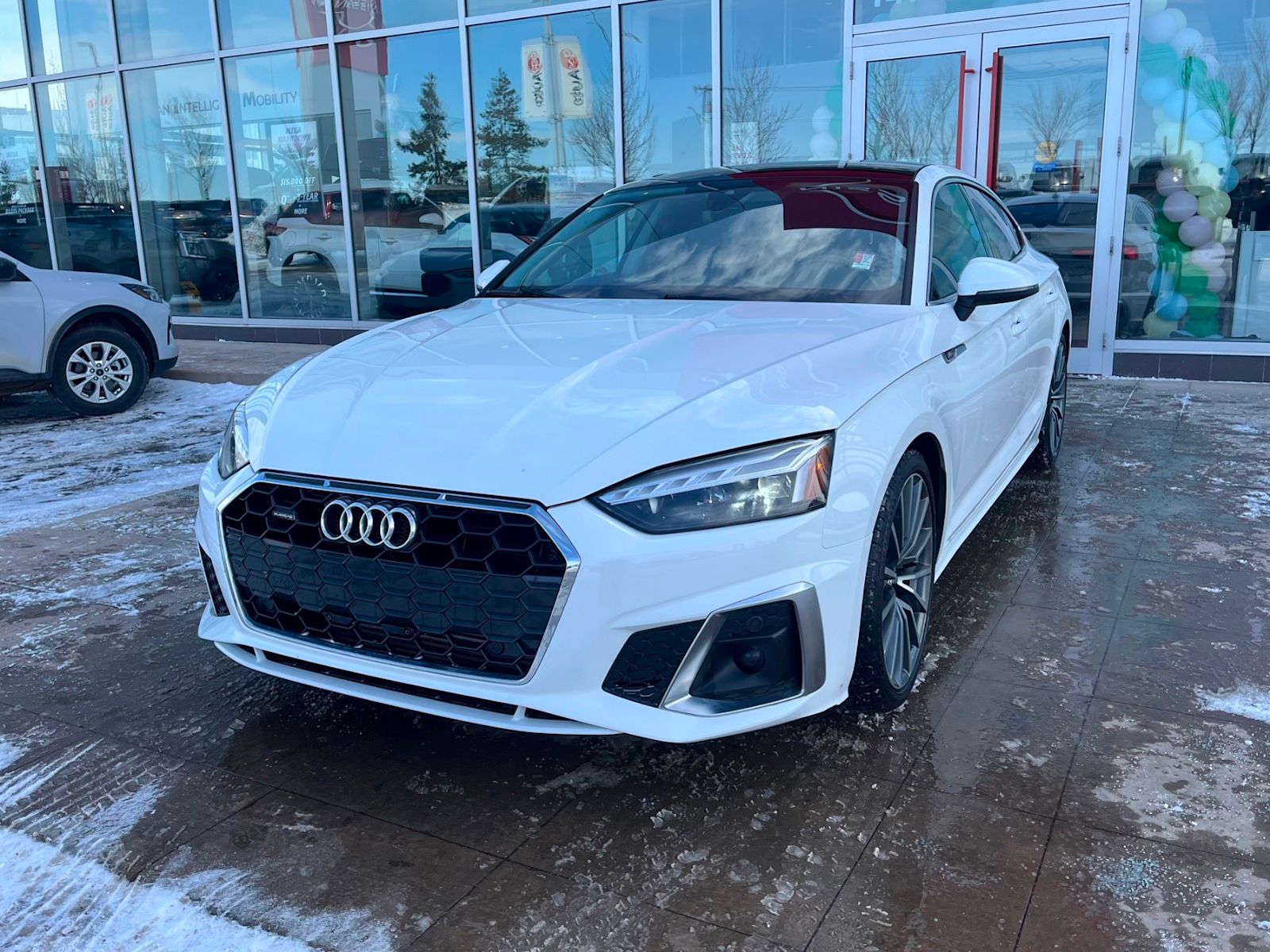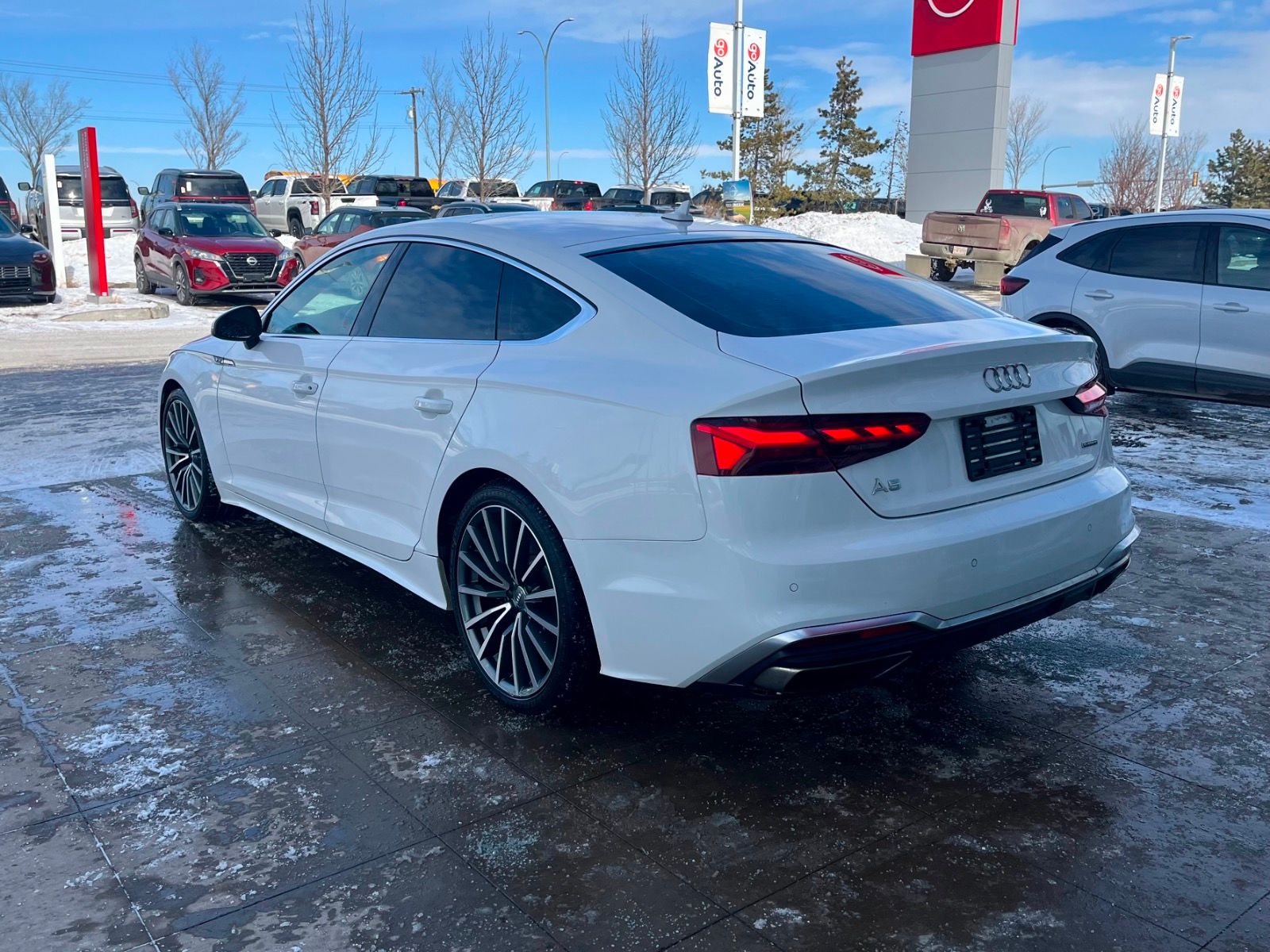 Experience luxury and performance in this pre-owned 2020 Audi A5 Sportback Progressiv 2.0 TFSI quattro in elegant White. Powered by a 248 HP 2.0L turbocharged 4-cylinder engine with a smooth 7-speed S tronic transmission and full-time all-wheel drive, it delivers responsive handling and confident traction in all conditions. Enjoy premium comfort with heated leather seats, dual-zone climate control, and advanced tech like a 10.1-inch touchscreen navigation system, smartphone integration, and a premium 10-speaker sound system. Safety features include adaptive cruise control, blind spot warning, rear camera with parking sensors, and multiple airbags for peace of mind. With performance tires on stylish 19″ multispoke wheels and signature LED lighting, this Audi A5 Sportback blends style, sophistication, and capability. Visit us today to take it for a test drive! *AMVIC LICENSED BUSINESS