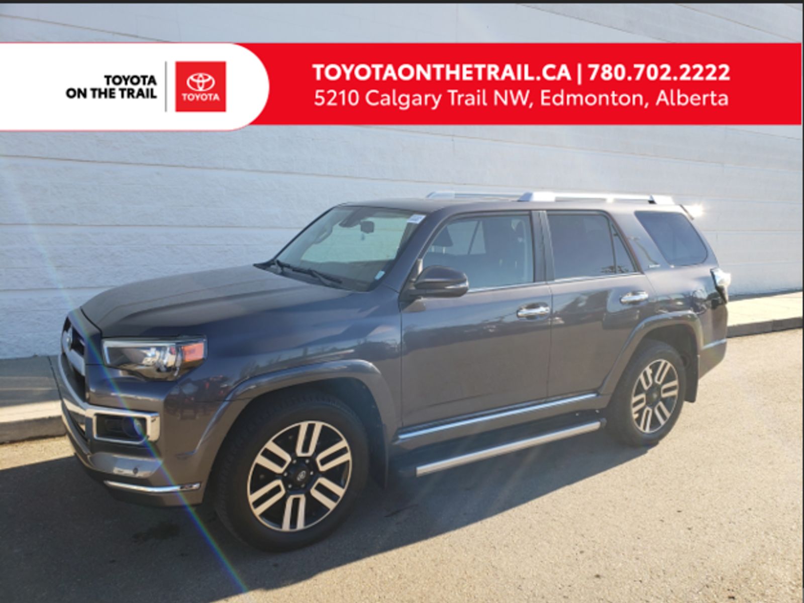 Plus Taxes & LicensingTOYOTA 4RUNNER LIMITED; LOW KM!!! SAFETY SENSE, LEATHER, JBL, SUNROOF, NAV, HEATED/COOLED SEATS, SMART, KEY, BACKUP CAMERA, SAFETY/SERVICE CONNECT, ANDROID/APPLE CONNECT, 7 PASSENGER!!!This 2020 TOYOTA 4RUNNER LIMITED 7 PASSENGER comes with our 4.0 L 270 HP engine paired to a smooth-shifting 5-speed automatic transmission. An authentic off-road Sport Utility Vehicle, the 4Runner combines heavy-duty body-on-frame construction with a powerful exterior design. Very well equipped this 4Runner comes with:Safety Sense-P;Pre-Collision System w/Pedestrian Detection,Lane Departure Alert,Automatic High Beam,Dynamic Radar Cruise Control (High Speed),Technology;Android Auto and Apple CarPlay,120V 400W power plug,Smart key with push-button start,Navigation,8” Touchscreen with backup camera,JBL premium 15 speaker sound system,SiriusXM, Bluetooth and AM/FM/USB/CD stereo,Comfort;Leather seats with 3rd row (7 Passenger), Front ventilated seats,Dual-zone automatic climate control with A/C and cabin filter,8 Way memory power driver’s seat,Power windows/locks/mirrors,Automatic headlights,Auto-dimming rear-view mirror,Leather multi-function steering wheel, Off-Road Performance;Full-time 4WD system,X-REAS Sport suspension,Fuel tank and transfer case protector plates,Trailer hitch with 4/7-pin trailer wire harness,Winter Comfort;Heated seats,Heated mirrors,Windshield wiper de-icer,Safety;8 Airbags,Automatic headlights,Anti-theft systemTire Pressure Monitoring System (TPMS)Smart Stop Technology (SST),Vehicle Stability Control (VSC),Anti-lock Brake System (ABS),Traction Control (TRAC),Electronic Brake Force Distribution (EBD),Brake Assist (BA), Remote + Service + Safety Connect (Subscription Required);Remote Connect – car starter, find my vehicle, guest vehicle monitor, window status,Service Connect – vehicle health reports, warning light notification, maintenance schedule,Safety connect – auto collision notification, stolen vehicle locator, emergency assistance button, enhanced roadside assistance,Exterior;Power sunroof,Running boards,Fog lamps,Projector style halogen headlights,20” Aluminum Alloy wheels,Toyota on the Trail is Edmonton’s NEWEST Toyota dealer – Located on your way at the corner of 51st Avenue and Calgary Trail, you can’t miss us! Toyota on the Trail is an AMVIC-Licensed Business.Looking for a used Toyota in Edmonton? Look no further than Edmonton’s used Toyota leader: Go Auto and Toyota on the Trail. No matter the style, we have the used Toyota Edmonton drivers are looking for. From the RAV4 to the Corolla to the Tundra to the Tacoma to the Highlander, no matter which used Toyota Edmonton drivers are looking for, we have it. Plus, you get more for what you pay for at Toyota on the Trail! Your used Toyota in Edmonton comes with a free Go Card that will save you 10% on all parts and service, a $500 bonus payout every time you refer a purchasing customer, and much more. So if you’re looking for a used Toyota in Edmonton, look no further than Toyota on the Trail. This vehicle may be leased or financed by anyone*, however, due to the recent increase in fraudulent vehicle purchase activity, Toyota on the Trail reserves the right to decline a transaction on suspicion of non-retail intentions including but not limited to wholesaling or exporting. *On approved credit, see dealer for details DISCLAIMER: Please contact us for verification of any information listed here. Due to human error and other possible complications, we cannot guarantee the accuracy of the information included herein, despite all reasonable attempts being made to ensure its accuracy.AMVIC Licensed BusinessAB Regulations Section 31.1(1): NO DISCLOSURES