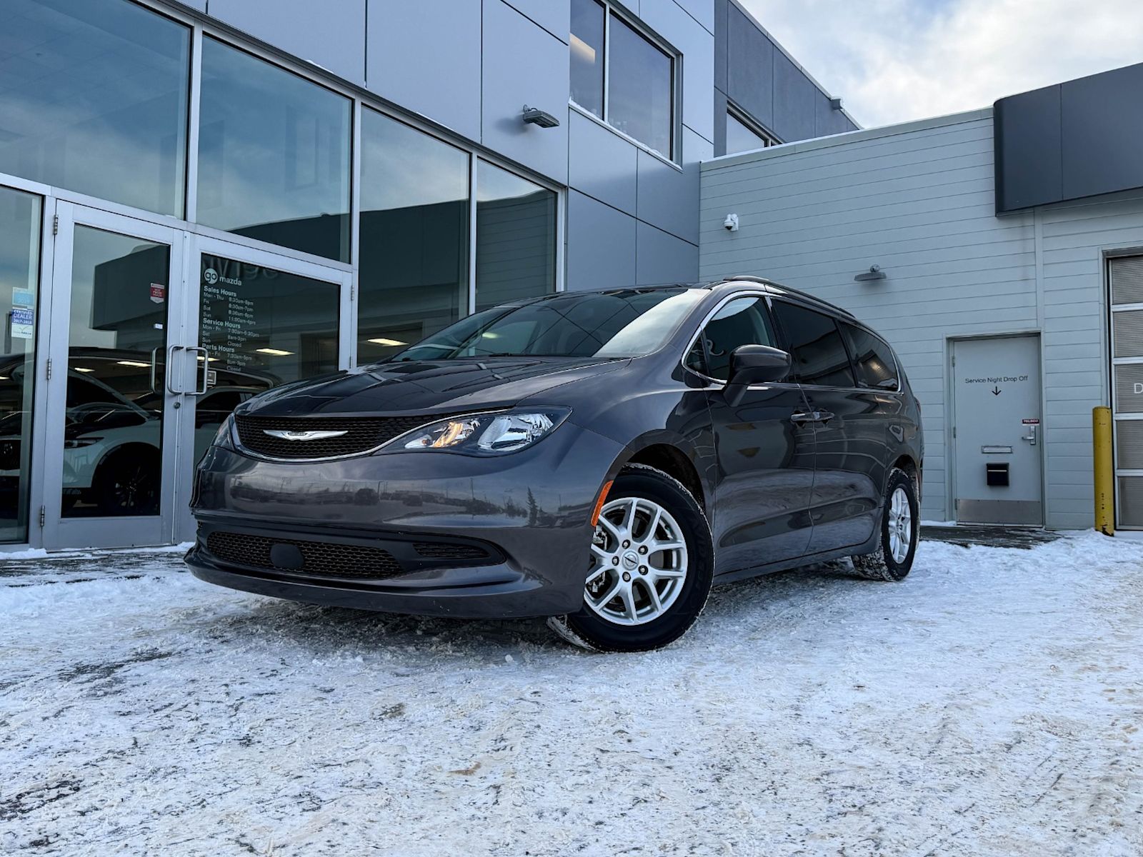 Plus Taxes & LicensingDiscover dependable family versatility with this pre-owned 2021 Chrysler Grand Caravan SXT 2WD in sleek Granite Crystal Metallic exterior paired with a comfortable black interior. Powered by a smooth 3.6L Pentastar VVT V6 engine with auto start/stop and a 9-speed automatic transmission, it delivers a balanced blend of power and efficiency.Enjoy premium features like second-row Stow ‘N Go bucket seats for flexible seating and cargo configurations, dual power sliding doors, and a power liftgate for easy access. Stay entertained and connected with the Uconnect 4 system featuring a 7-inch touchscreen, SiriusXM satellite radio, and a single overhead DVD system — ideal for family road trips.Safety is paramount with Advanced Brake Assist, Pedestrian Emergency Braking, Blind-Spot and Rear Cross-Path Detection, along with Park-Sense Rear Park Assist. Comfort is assured with heated front seats, a heated leather-wrapped steering wheel, and the Cold Weather Group package.With a spacious interior, practical storage solutions, and a durable Touring Suspension, this Grand Caravan SXT offers the perfect blend of comfort, convenience, and safety. Contact us today to schedule your test drive and experience the ultimate family minivan that meets all your needs!Go Mazda is an AMVIC licensed business.Clean CarFax