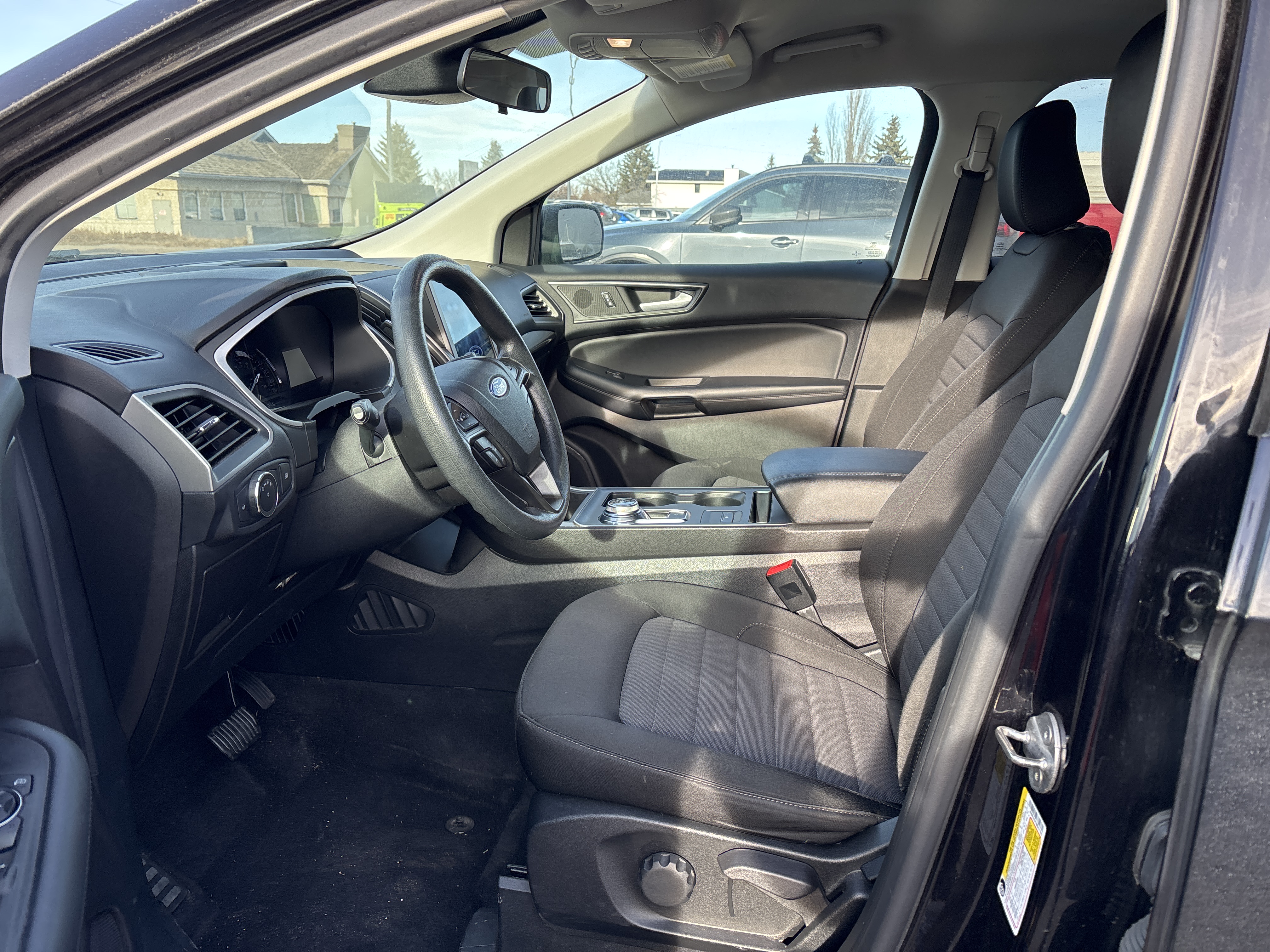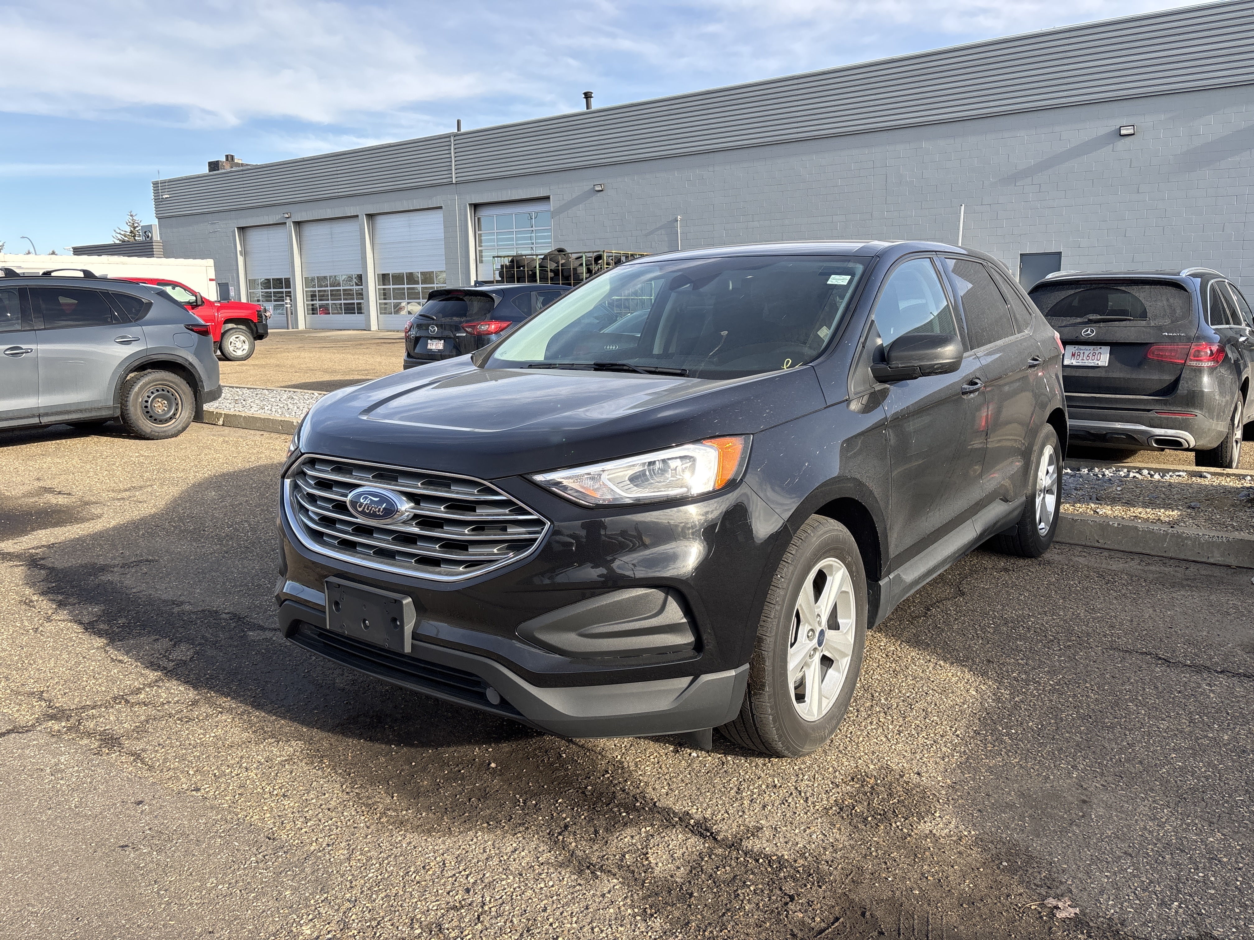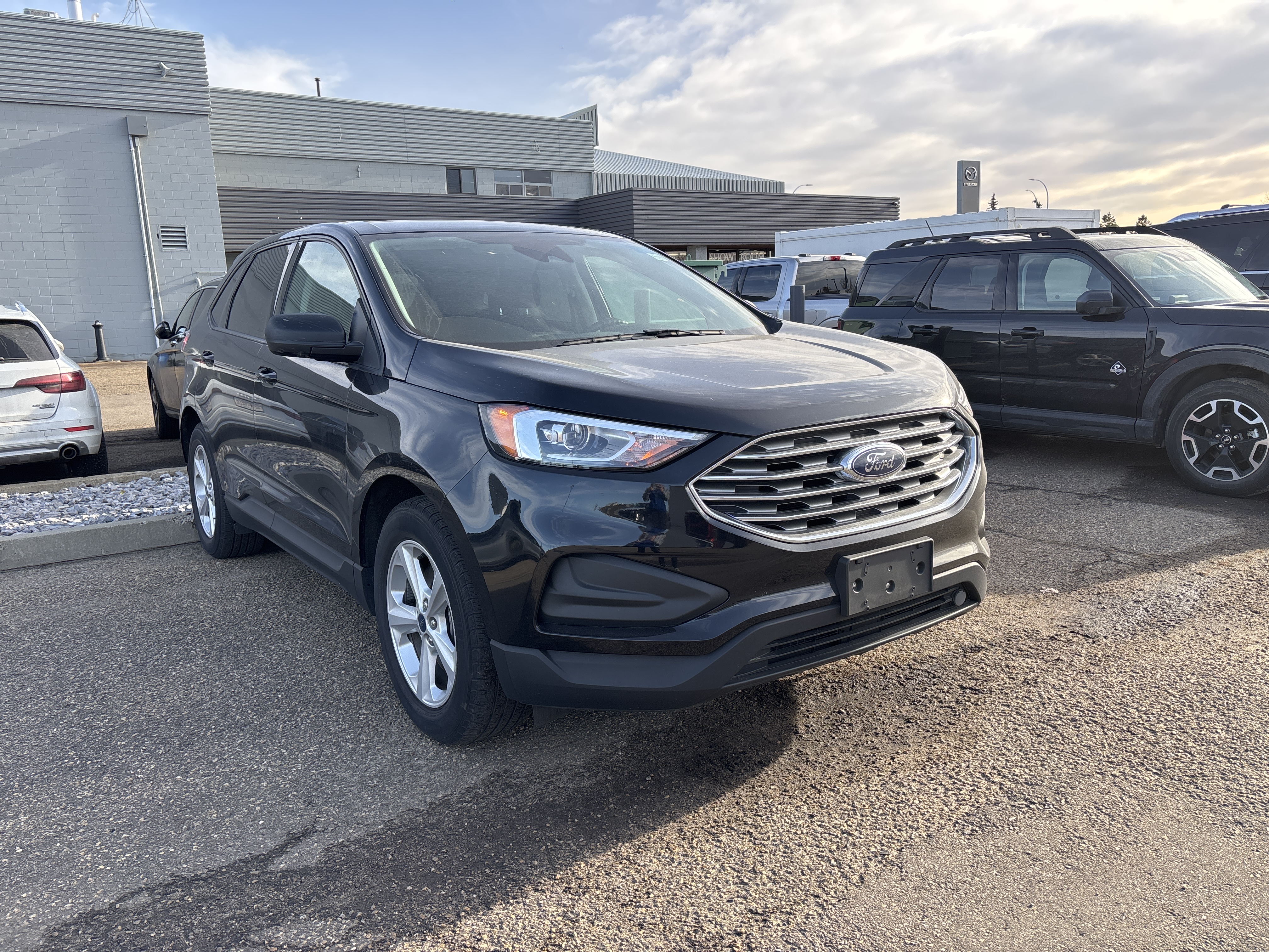 Feast your eyes on this black beauty, the 2021 Ford Edge SE AWD, a symphony in steel and sophistication!