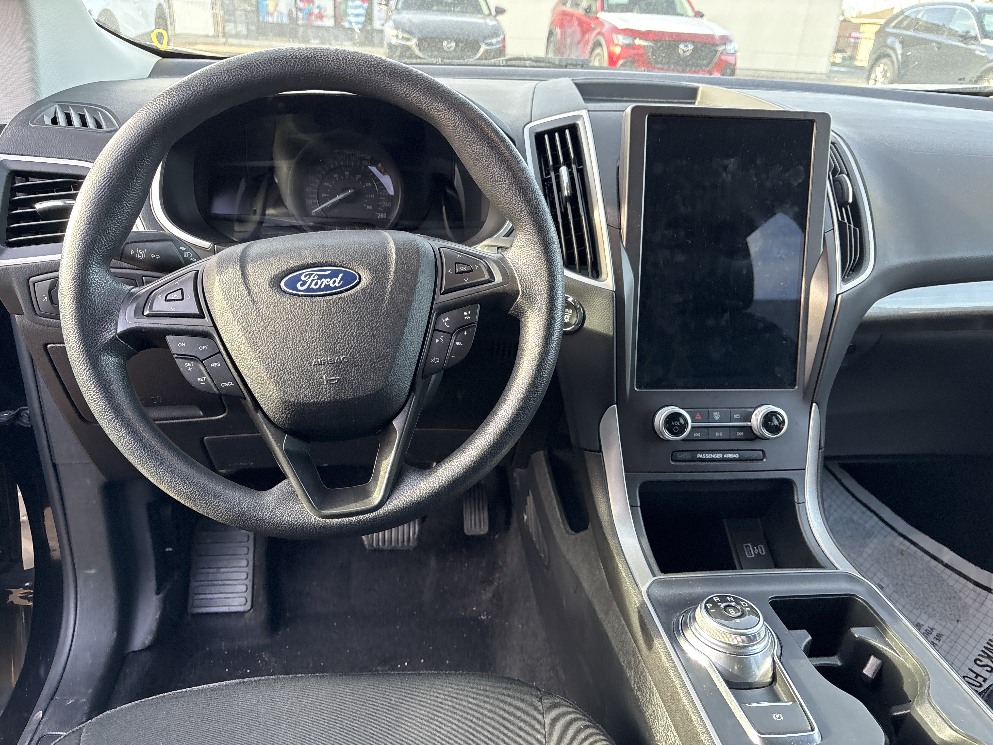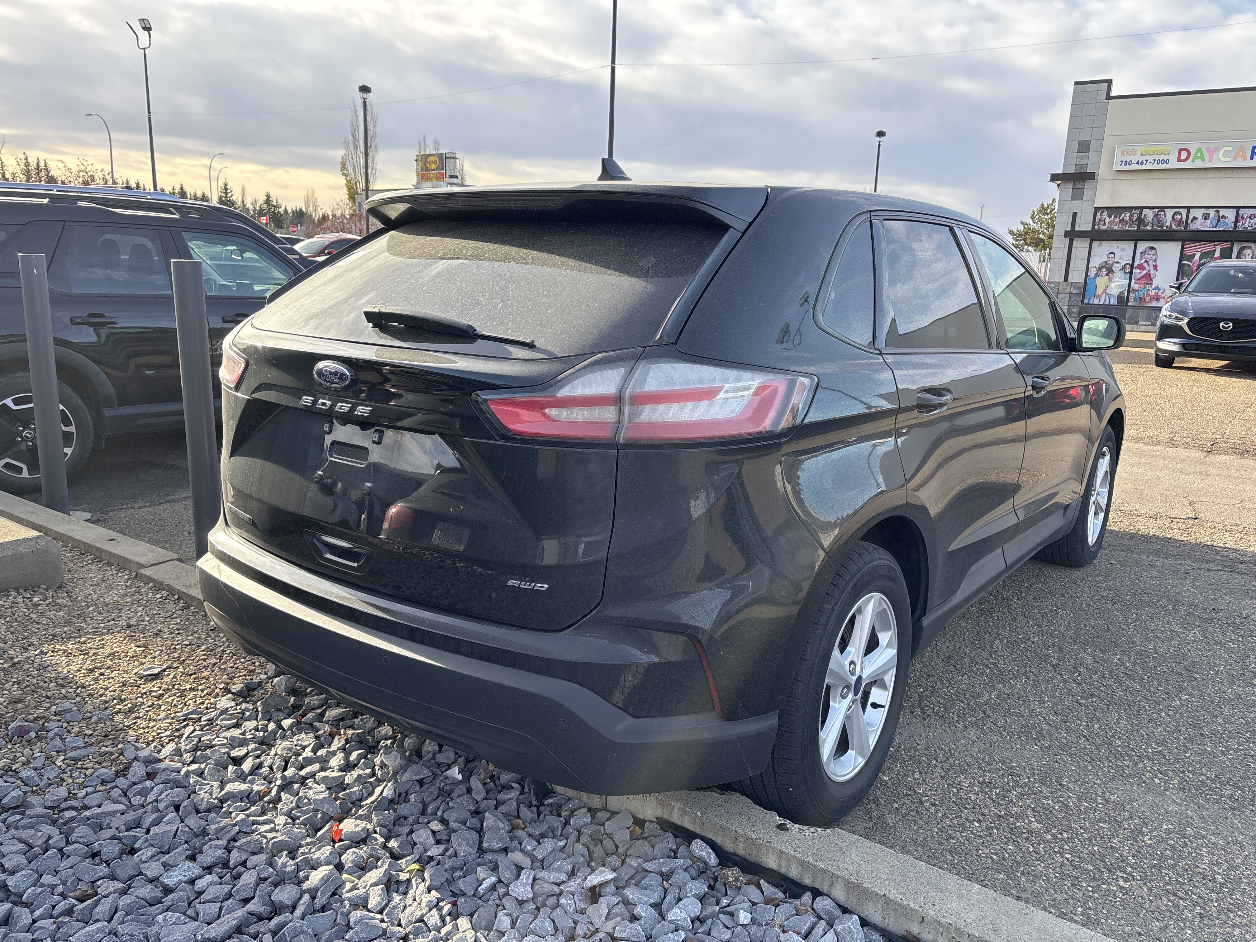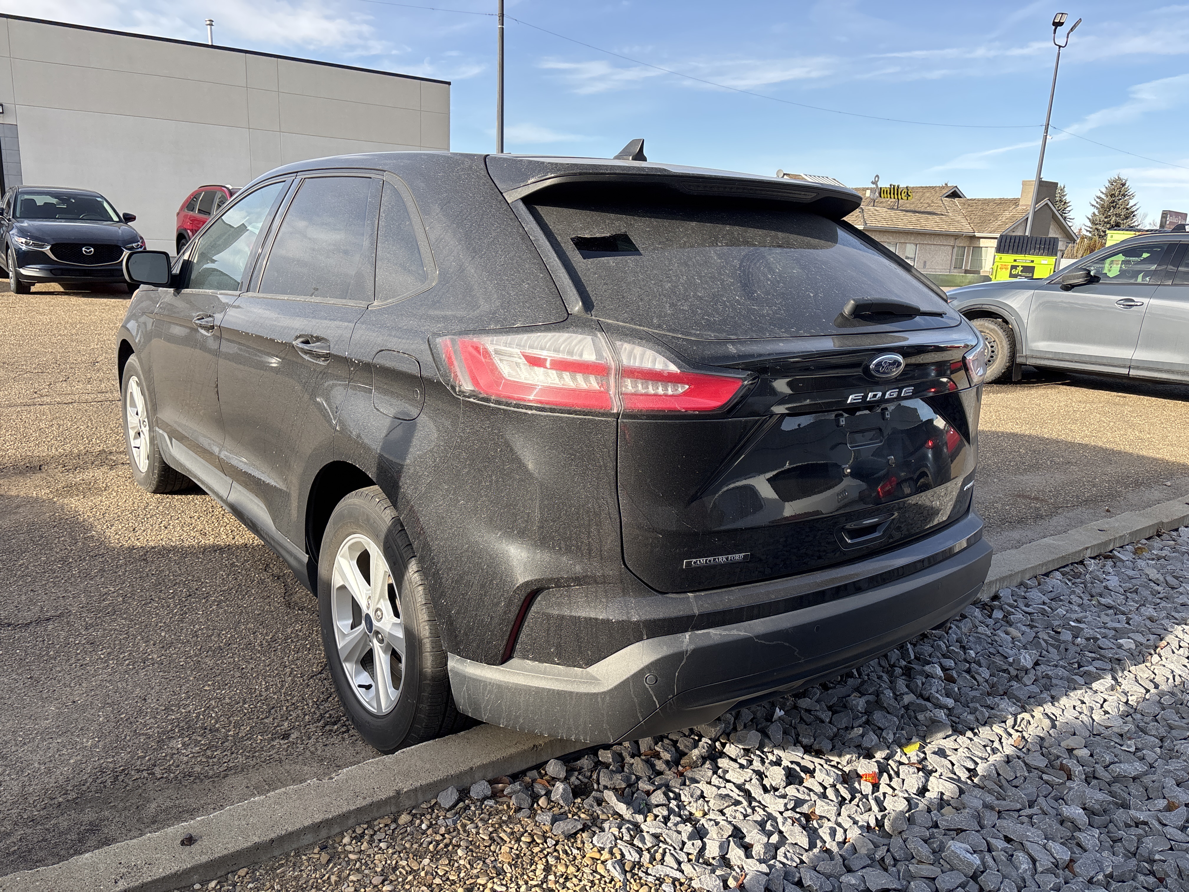 Feast your eyes on this black beauty, the 2021 Ford Edge SE AWD, a symphony in steel and sophistication!