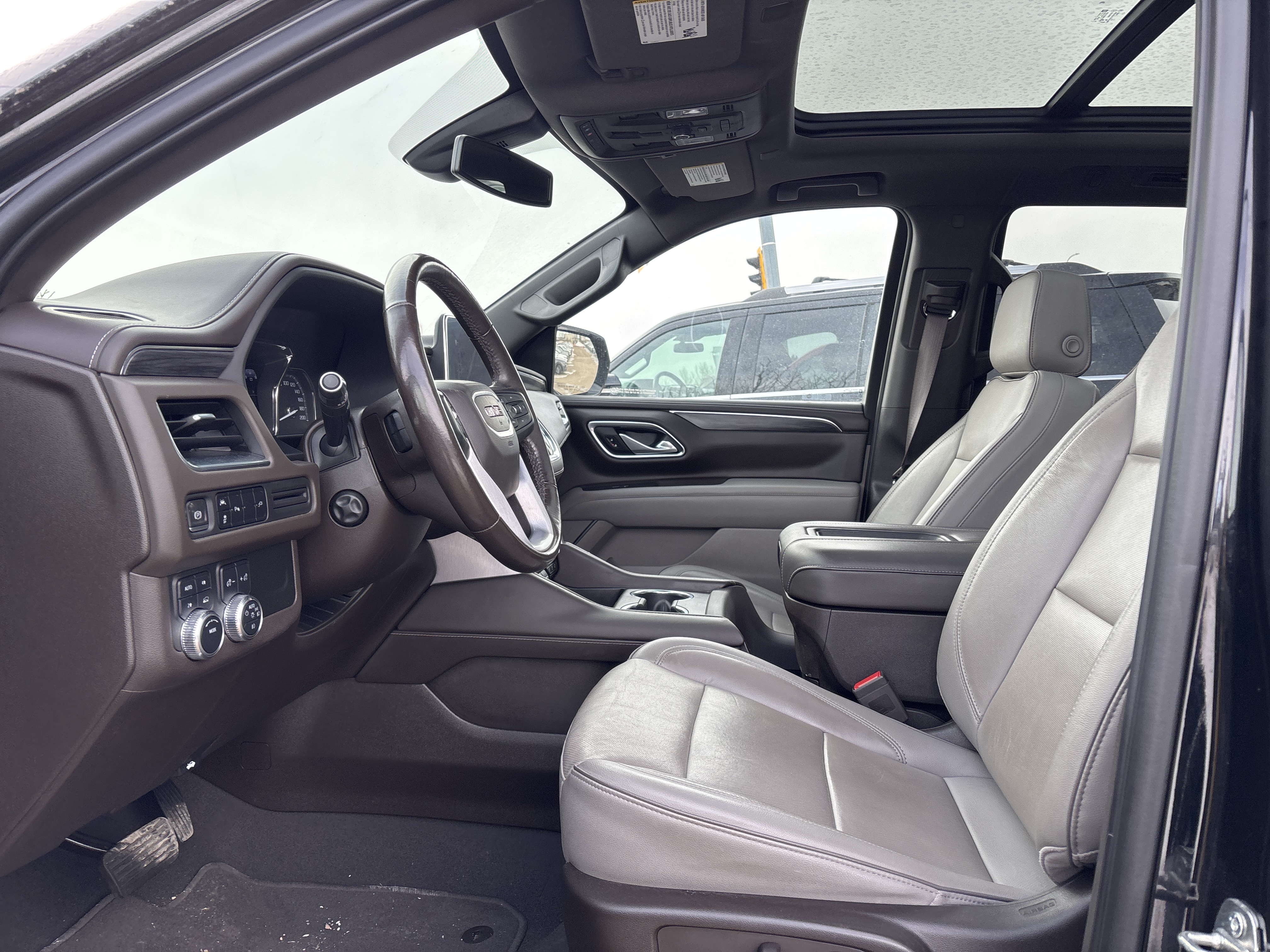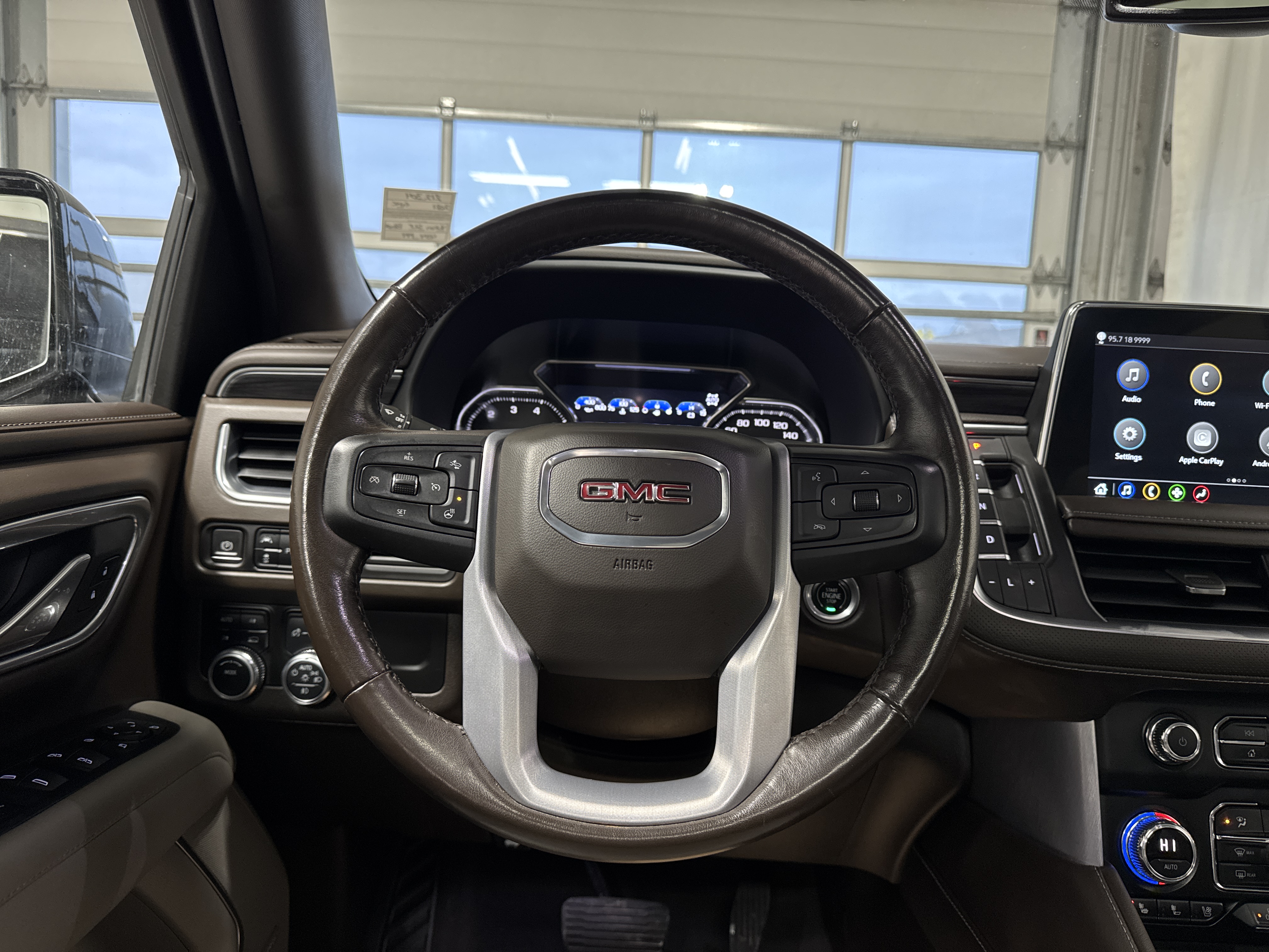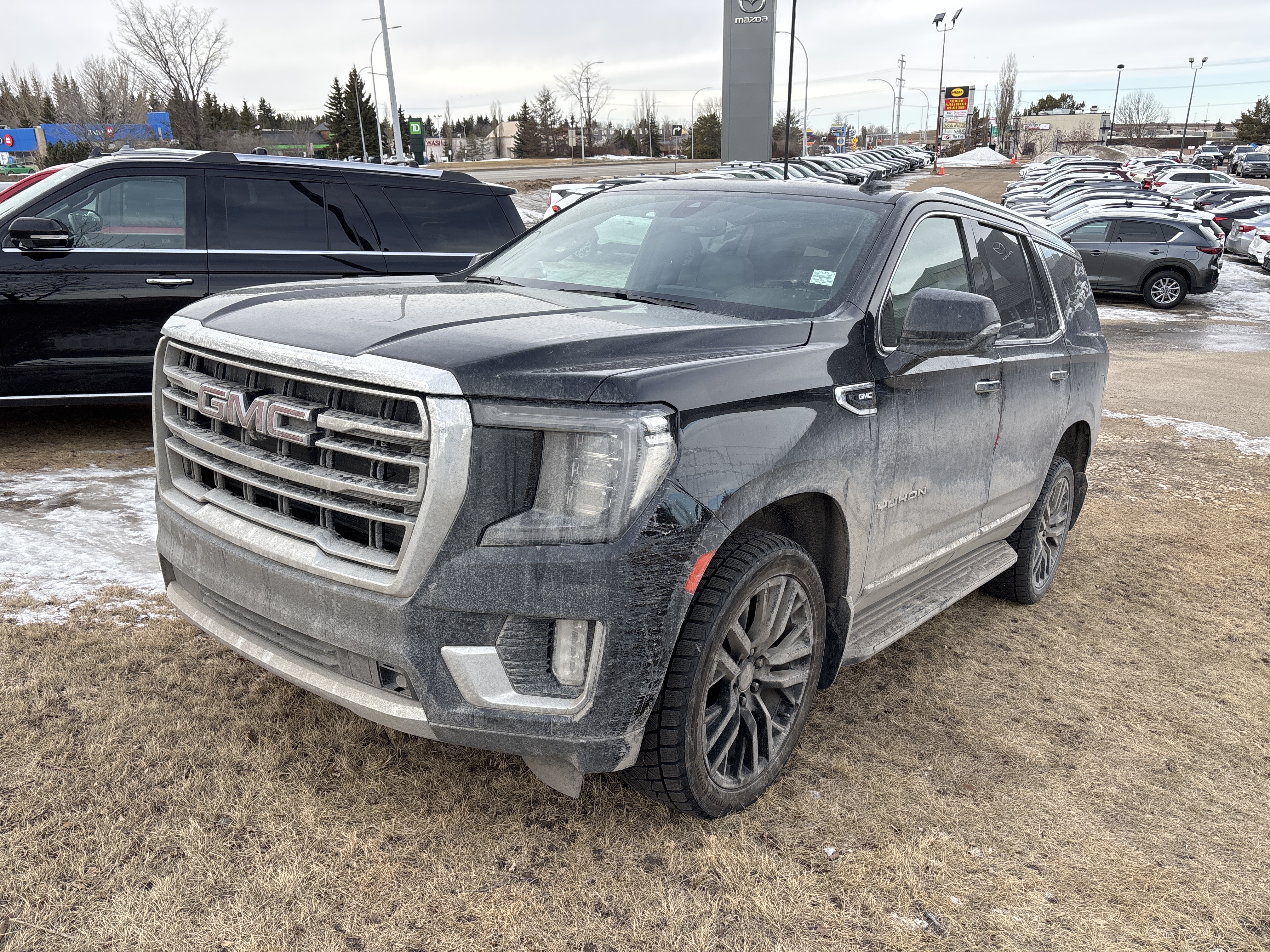 Ah, behold the magnificent chariot that awaits you at Park Mazda – a 2021 GMC Yukon SLT, dressed elegantly in a classic Black exterior. This vessel of automotive glory doesn’t just roll down the road; it commands it, powered by an 8 cylinder engine paired with an automatic transmission, ensuring a ride as smooth as a jazz solo on a Saturday night. Low Kilometers. Luxury Package, Remote Start, OnStar, Third Row Seat, Memory Seat, Heated/Ventilated Front Seats, Captains Chairs, Rear Heated Seats, Keyless Entry, Forward Collision Alert, Roof Rails, Running Boards, Rear Parking Aid, Power Front Seats, A/C, Electronic Climate Control, Power Tilt/Telescopic Steering Wheel, Power Windows/Locks/Mirrors, Blind Spot Sensor, Lane Departure Warning, Traction Control, Keyless Remote, Garage Door Opener, Electronic Park Brake, Tri Zone Climate Control, Dual Zone A/C, Rear Air Vents, Auto-Dimming Rearview Mirror, Rear Cross Traffic Alert, Power Trunk, LED Headlights/Taillights, Rear Window Defrost, Fog Lights, 22” Alloy Wheels, Panoramic Roof, Leather Upholstery, AM/FM/XM Radio, Steering Wheel Audio Controls, USB Input, Apple CarPlay & Android Auto.