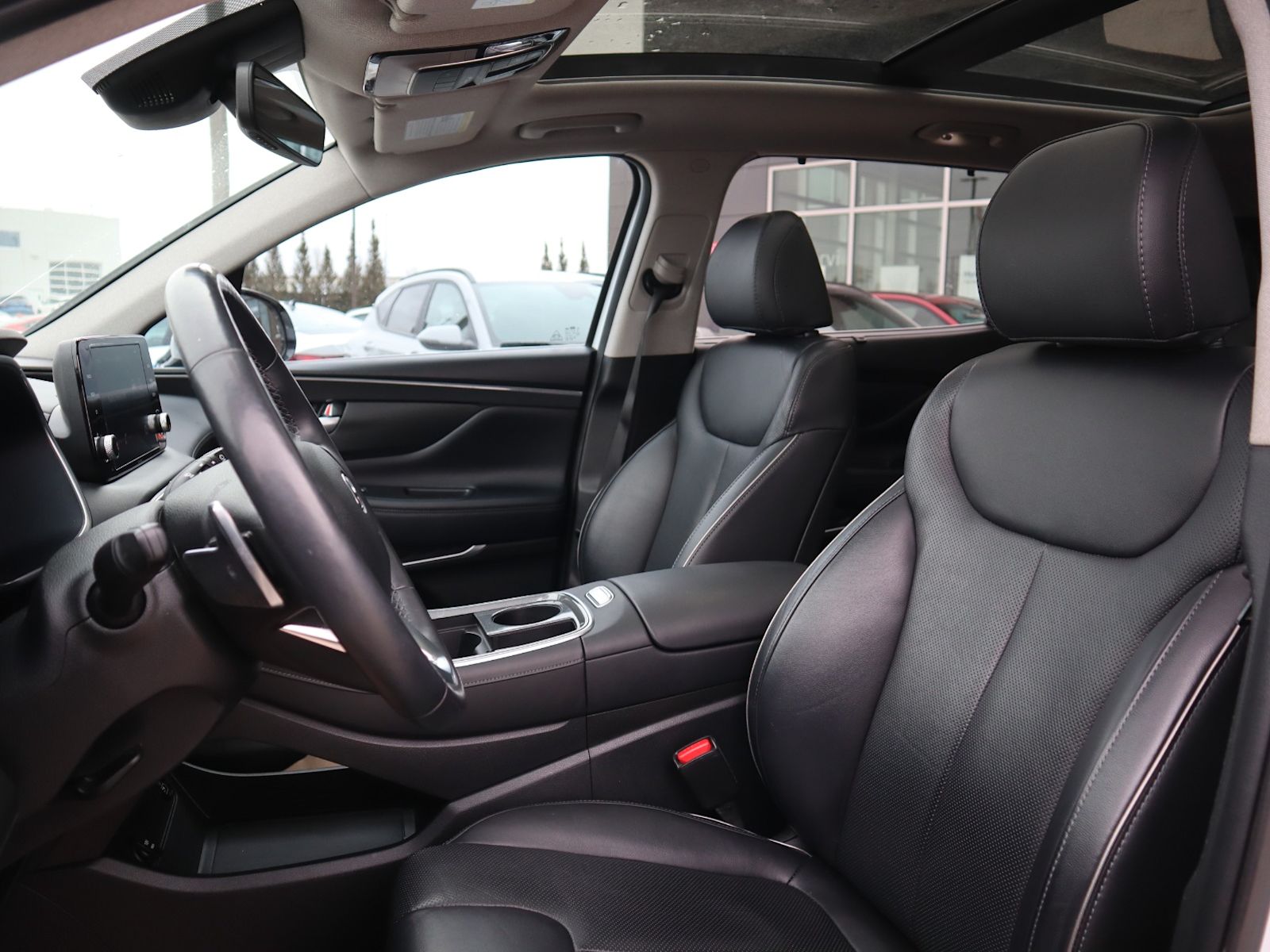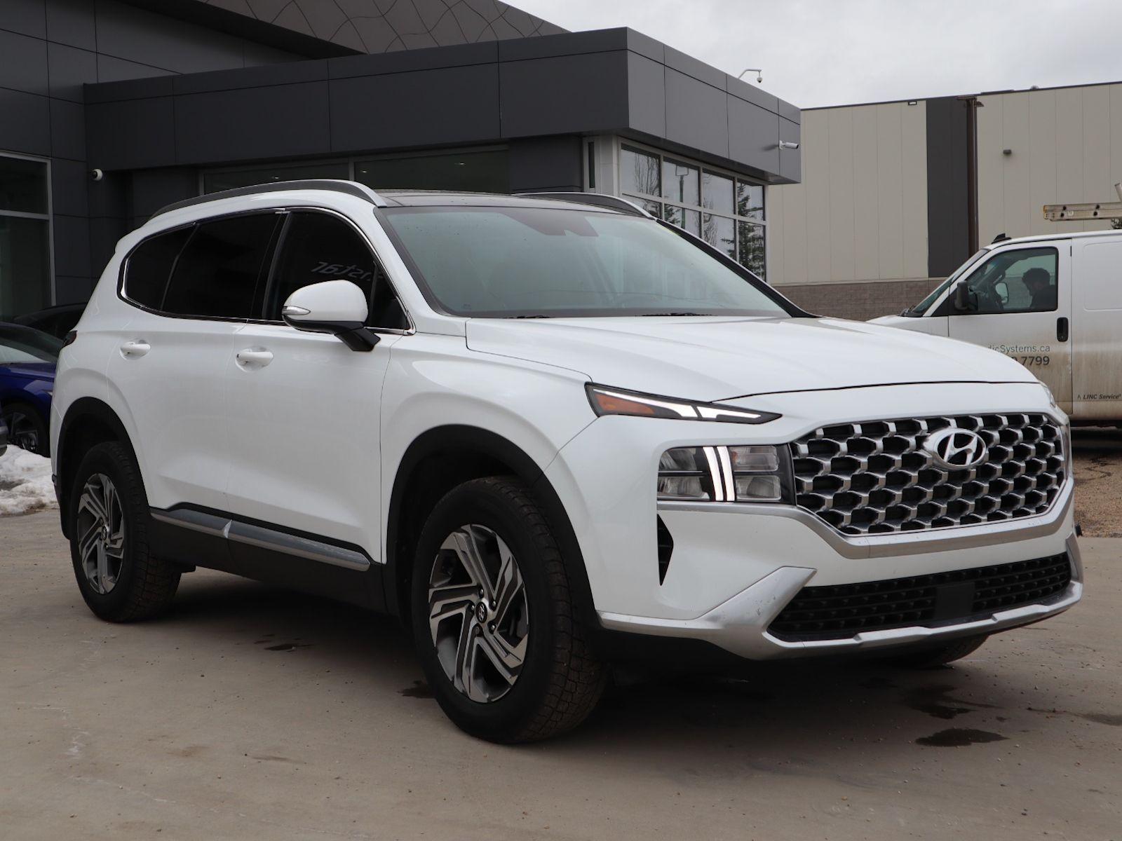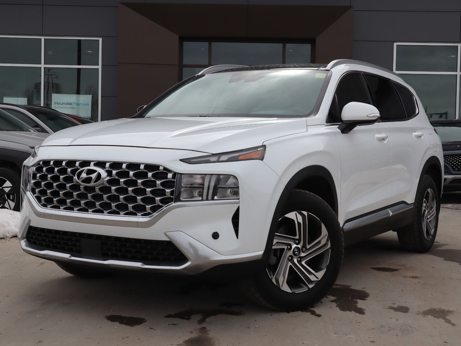 Discover the versatile and stylish 2021 Hyundai Santa Fe Preferred AWD with Trend Package in crisp White exterior and sleek Black leather interior. Powered by a responsive 2.5L I4 engine paired with an 8-speed automatic transmission, this SUV delivers a smooth, confident ride all year round with Automatic Full-Time AWD.Enjoy premium features like heated front leather bucket seats, dual-zone automatic climate control, and a user-friendly 8-inch touchscreen with navigation and smartphone connectivity. Stay safe and in control with advanced driver-assist technologies including Lane Departure Prevention, Blind Spot Detection, Forward Collision Mitigation, and Rear Parking Sensors. AMVIC Licenced businessInterested? Need more information? Contact our Internet sales team at info@northstarhyundai.ca, call us at 780-478-7669, or come on in! Northstar Hyundai is located at 14803 137 Ave NW, Edmonton, AB, right on the corner of 137 Ave and St. Albert Trail… you can’t miss us! We are proud to serve Edmonton and the rest of Alberta for 35 years and counting!This vehicle may be leased or financed by anyone*, however, due to the recent increase in fraudulent vehicle purchase activity, Northstar Hyundai reserves the right to decline any form of payment, including but not limited to cash, bank draft, certified cheque, EFT, or credit card. *on approved credit, see dealer for details.