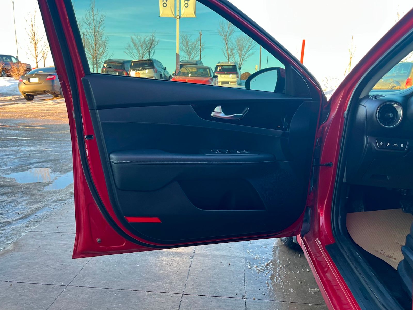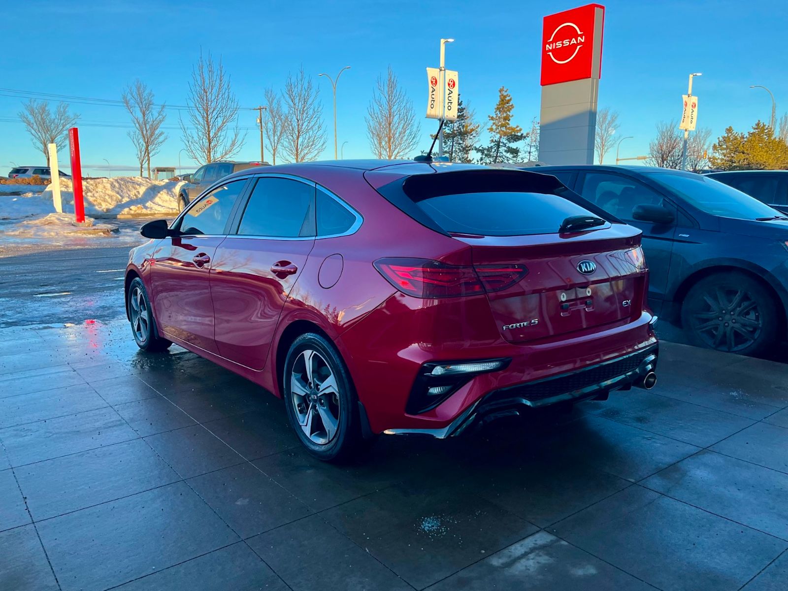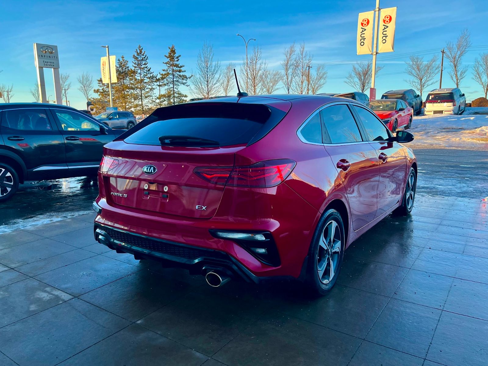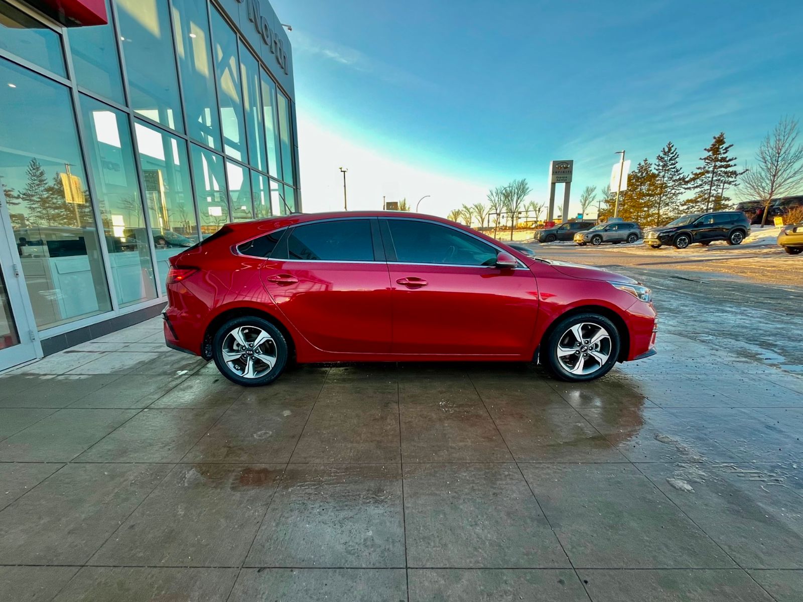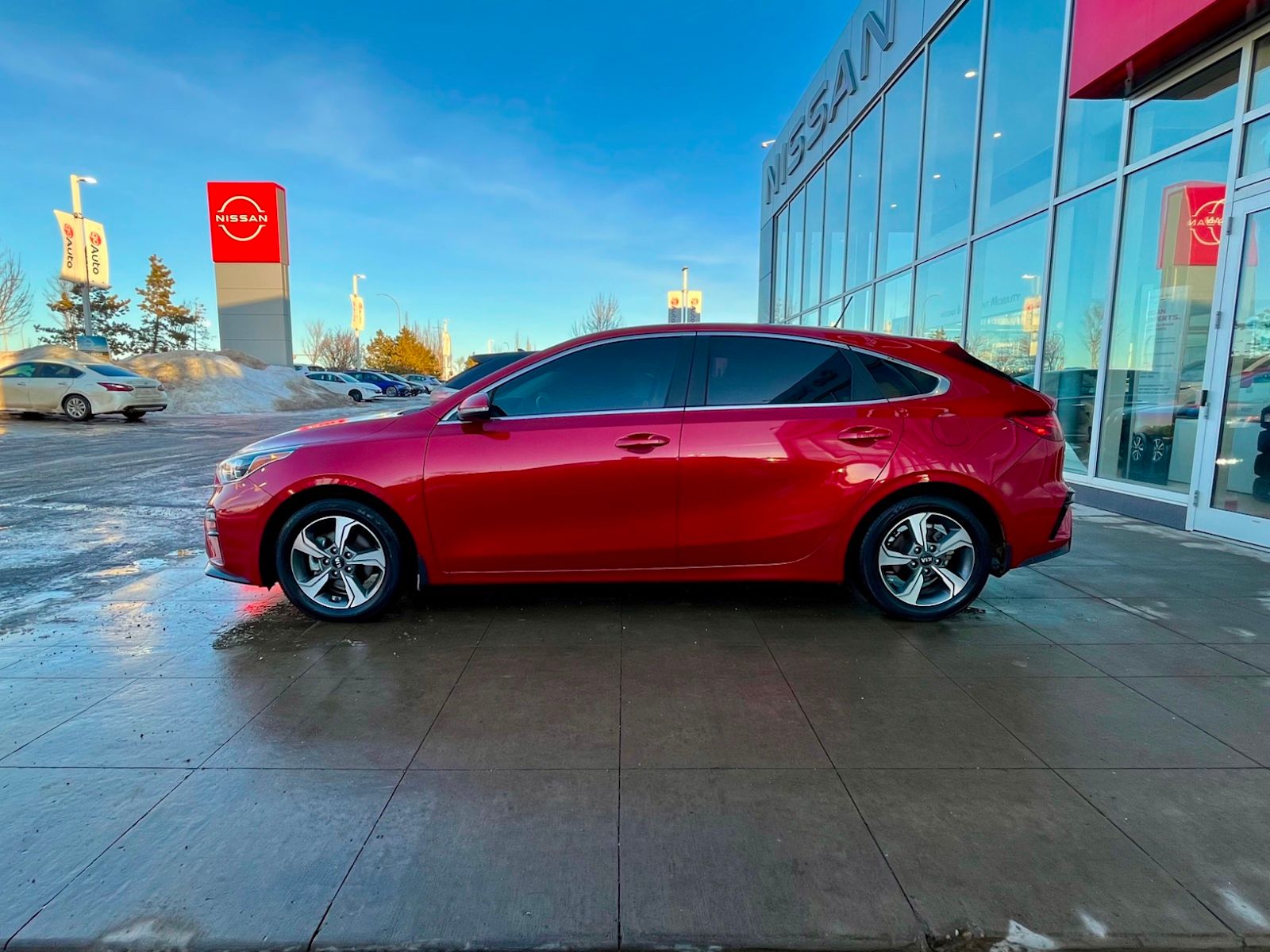 Discover driving excitement with this pre-owned 2021 Kia Forte5 EX IVT in vibrant Red with a sleek Black interior. Powered by a fuel-efficient 2.0L MPI 4-cylinder engine paired with an Intelligent Variable Transmission, this hatchback delivers smooth performance and responsive handling. Enjoy comfort year-round with heated front bucket seats and manual climate control, while the 8″ touchscreen display keeps you connected. Safety is paramount with features like lane departure prevention, blind spot warning, and a rearview camera. Stylish 16″ alloy wheels complement the aerodynamic design, and conveniences like keyless entry, rear cargo space with a rigid cover, and wireless device charging make every drive effortless. This Forte5 EX IVT is a perfect blend of style, technology, and reliability – visit us to take it for a test drive today! *AMVIC LICENSED BUSINESS