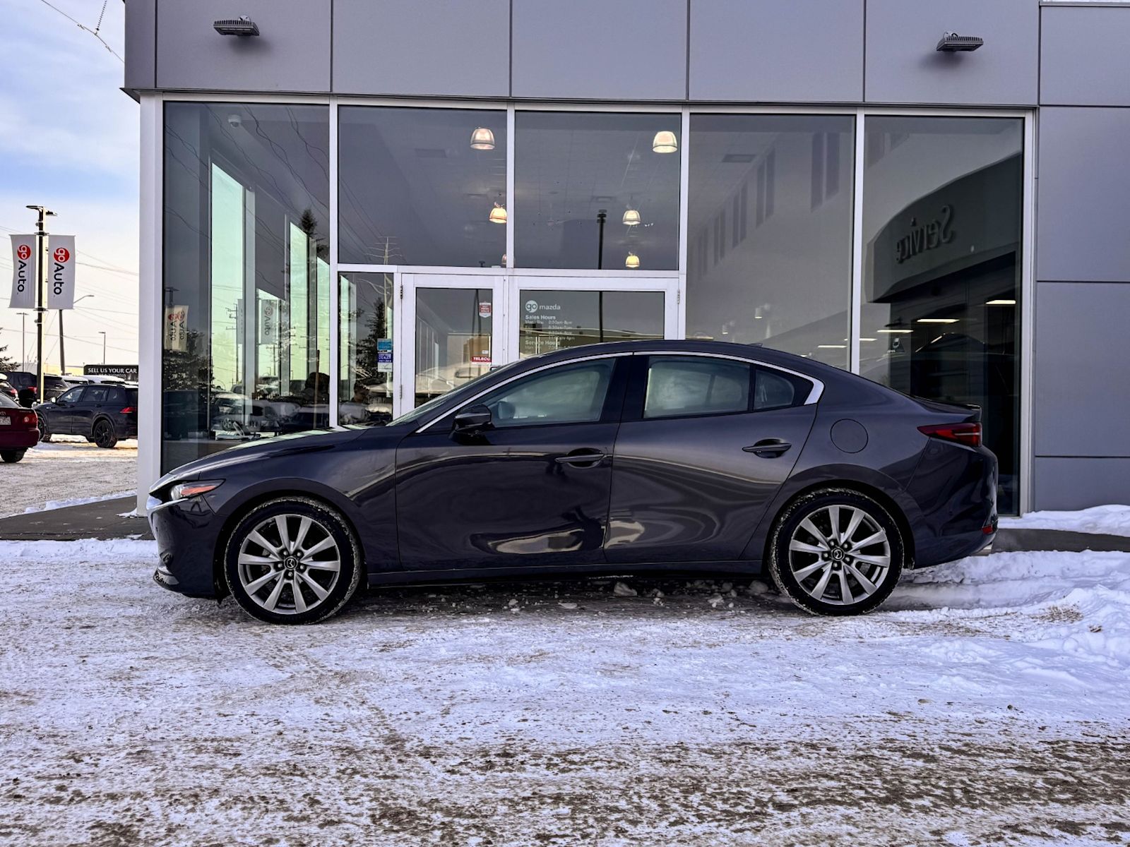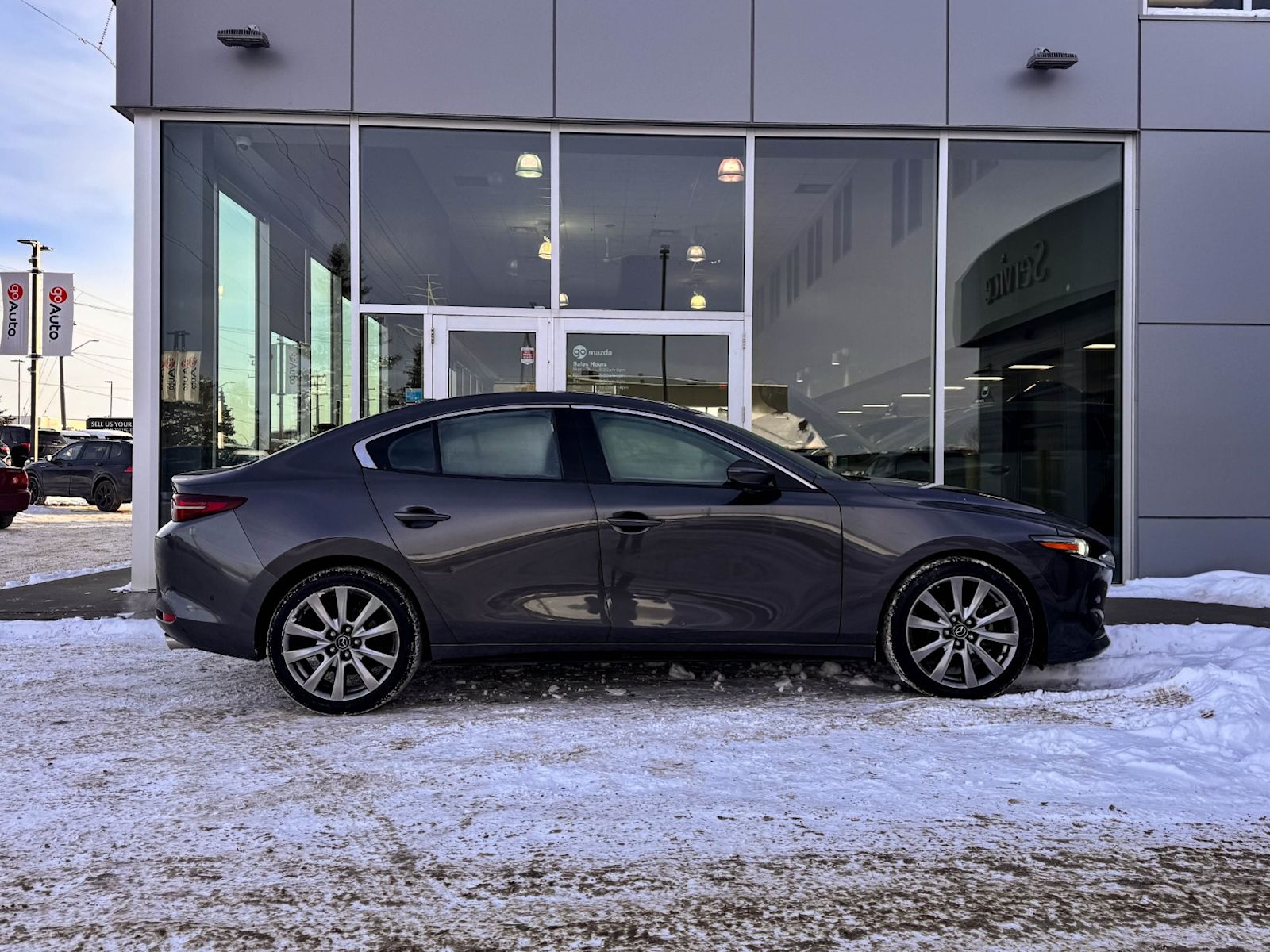 Plus Taxes & LicensingExperience the perfect blend of performance, luxury, and cutting-edge technology with this pre-owned 2021 Mazda Mazda3 GT Auto FWD in sleek Grey. Powered by a spirited 2.5L SKYACTIV-G engine paired with a smooth 6-speed automatic transmission, it delivers an engaging and efficient drive every time.Step inside to enjoy heated leather-trimmed front seats, dual-zone automatic climate control, and an advanced Bose premium sound system that brings your favorite music to life. Stay connected and confident on the road with the integrated navigation system, SiriusXM services, and comprehensive safety features including lane departure prevention, blind spot warning, and forward collision mitigation.Sporty 18″ alloy wheels, adaptive LED headlights, and a host of driver-friendly technologies make this Mazda3 GT not only stylish but also practical and safe. With features like smart keyless entry, push-button start, and wireless audio streaming, every drive is a pleasure.Don’t miss this opportunity to own a meticulously maintained Mazda3 GT that truly elevates your driving experience. Visit Go Mazda today and take it for a test drive!Vehichle was previously registered in Ontario and Saskatchewan Vehichle has a $0 claim on the Carfax Go Mazda is a AMVIC licenced buisness