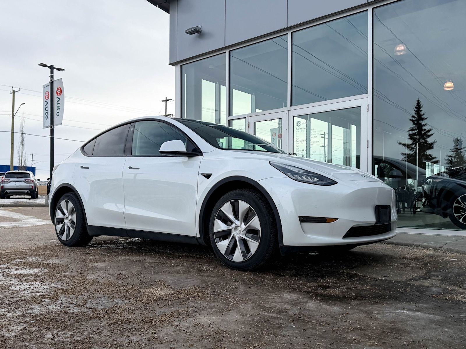 Plus Taxes & LicensingExperience the Future of Driving with this Pre-Owned 2021 Tesla Model Y Long Range AWD in Sleek White!This all-wheel-drive electric SUV offers an impressive dual motor setup with front AC Induction and rear AC Permanent Magnet motors, delivering smooth, responsive performance with a 1-speed automatic transmission. Featuring premium leatherette seats, heated front and rear seats, and advanced climate controls, comfort is guaranteed for all five passengers.Stay connected and entertained with Tesla’s 15-inch touchscreen with integrated navigation, premium audio system, wireless charging, and over-the-air updates. Safety is paramount with advanced features like blind spot warning, lane departure prevention, forward collision mitigation, and 8 airbags for peace of mind.Enjoy the convenience of a power liftgate, adaptive cruise control with stop & go, and an intuitive digital instrument cluster. Plus, with Tesla’s sustainable electric powertrain and regenerative braking, you’ll reduce your carbon footprint while enjoying thrilling acceleration.Don’t miss this opportunity to own a tech-forward, luxurious, and environmentally conscious SUV that’s ready for any adventure. Visit us at Go Mazda today and take the 2021 Tesla Model Y Long Range AWD for a test drive!Vehicle previously registered in Brittish Columbia Vehicle has a claim on the Carfax $ 2309.64