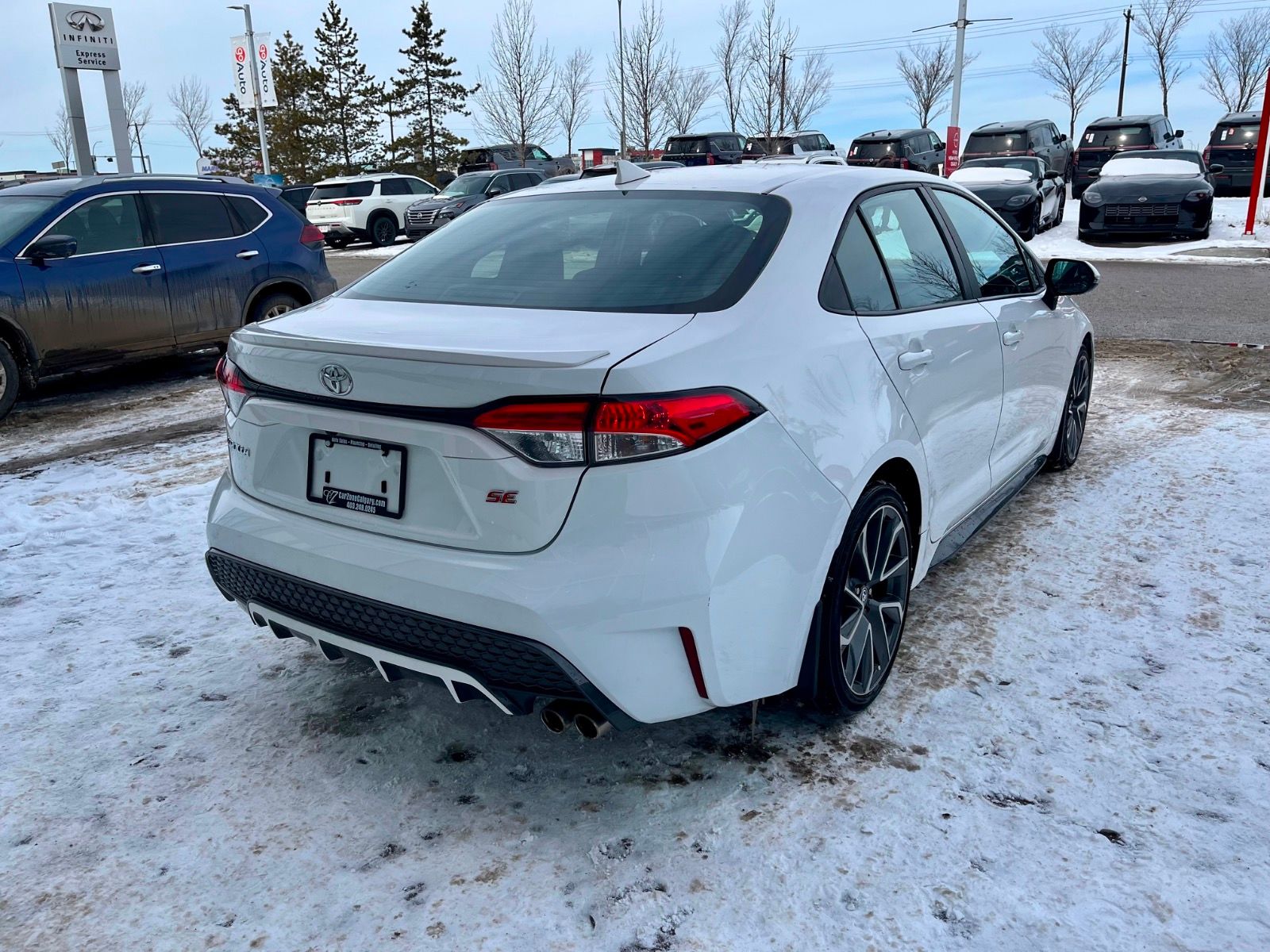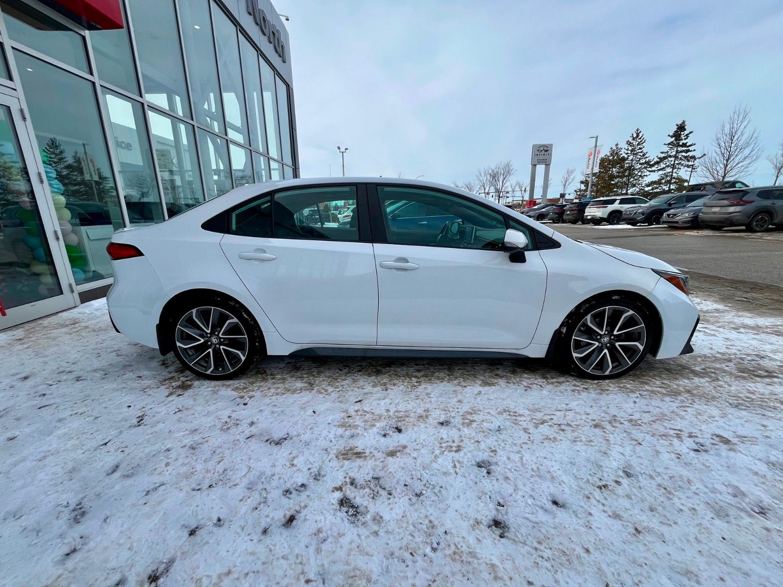 Plus Taxes & LicensingCheck out this sleek Pre-Owned 2021 Toyota Corolla SE in stunning Super White! Powered by a fuel-efficient 2.0L 4-cylinder engine paired with a smooth Direct-Shift CVT transmission, this Corolla offers a perfect blend of performance and reliability.Enjoy sporty style with 16″ alloy wheels and a rear lip spoiler, plus comfort features like heated sport fabric front bucket seats and automatic climate control. Stay connected and entertained with the 8-inch touchscreen, wireless audio streaming, smart device mirroring, and steering wheel-mounted controls.Safety is top-notch with 10 airbags, lane departure prevention, blind-spot warning, forward collision mitigation, rearview camera, and automatic high-beam headlights. Plus, keyless entry with push-button start and smart key with hands-free access adds convenience.This Corolla SE is the ideal compact sedan combining sporty styling, advanced tech, and Toyota’s legendary dependability. Come test drive it today at Go Nissan North! *AMVIC LICENSED BUSINESS