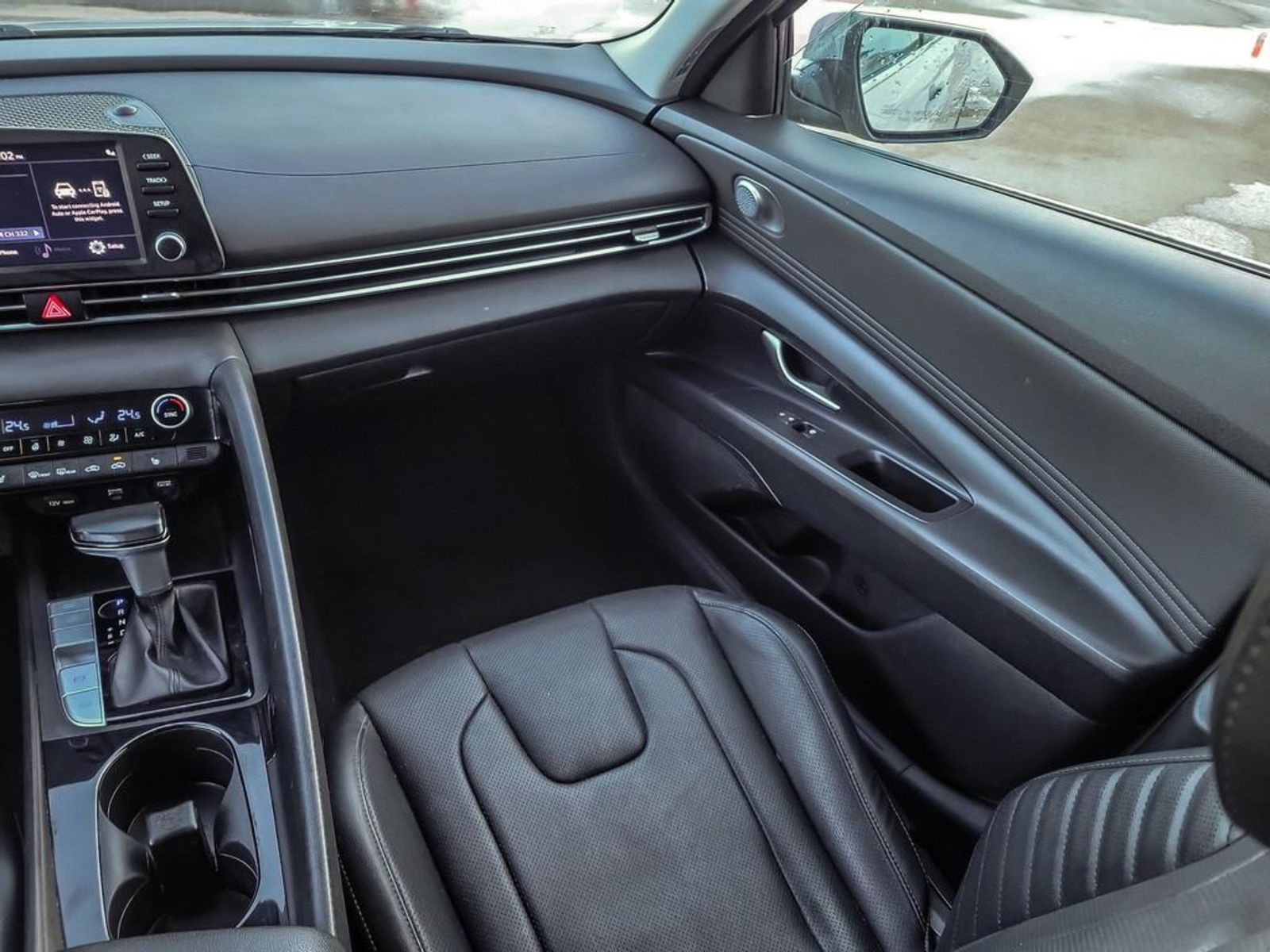 Discover exceptional value with this pre-owned 2022 Hyundai Elantra Ultimate IVT in sleek Grey exterior and refined Black leather interior. Powered by a fuel-efficient 2.0L MPI DOHC I4 engine paired with an intelligent variable transmission, this sedan delivers smooth, responsive handling complemented by 17″ alloy wheels wrapped in all-season tires.Step inside to heated front bucket seats with premium leather surfaces, dual-zone automatic climate control, and an 8-inch touchscreen featuring navigation, wireless smart device mirroring, and a Bose premium audio system for immersive sound. Safety features abound with lane departure prevention, active blind spot system, forward collision mitigation, and a rearview camera.Enjoy convenience with keyless entry, push-button start, remote start, and power windows. This Elantra also offers a panoramic sunroof, heated steering wheel, and advanced driver assist technologies that enhance comfort and confidence on every drive.Experience the perfect blend of style, technology, and safety in this meticulously maintained 2022 Hyundai Elantra Ultimate IVT — a smart, stylish choice ready to elevate your daily driving. Contact us today to schedule your test drive!