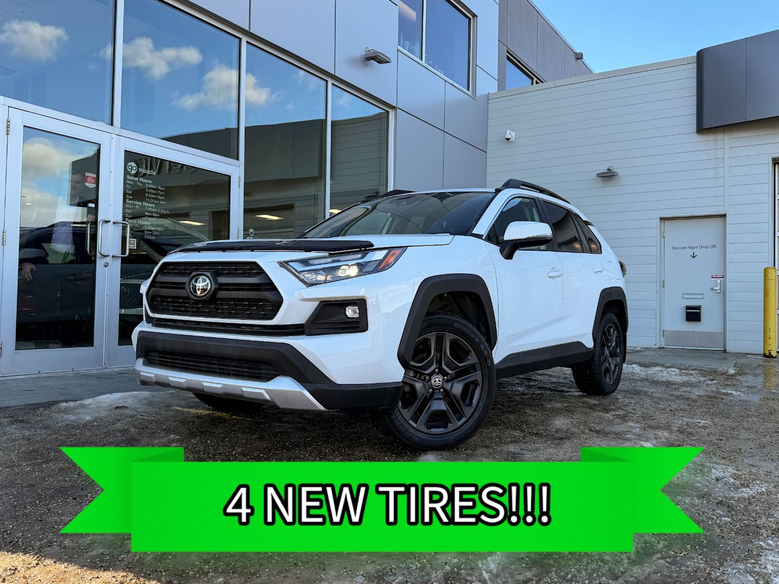 Plus Taxes & LicensingDiscover the perfect blend of rugged capability and refined comfort with this pre-owned 2022 Toyota RAV4 Trail AWD in stunning White. Powered by a 2.5L 4-cylinder DOHC engine paired with an efficient Direct Shift 8-speed automatic transmission, this SUV delivers 203 horsepower with smooth, responsive handling. Tackle any terrain confidently with its full-time AWD, advanced traction control, and hill descent assist.VEHICLE HAS 4 NEW TIRES!!!!Enjoy premium comfort with heated front bucket seats upholstered in durable SofTex, dual-zone automatic climate control, and a panoramic sunroof that brightens every drive. Stay connected and entertained via the intuitive touchscreen infotainment system featuring wireless device charging, 5 USB ports, and integrated smartphone mirroring.Safety is paramount with 8 airbags, lane departure prevention, blind spot warning, forward collision mitigation, and a rearview camera. The Trail’s rugged exterior styling with 19″ alloy wheels and roof rails complements its versatility, making it ready for all your adventures.Experience reliability, style, and advanced technology—all wrapped in one exceptional 2022 Toyota RAV4 Trail AWD. Visit Go Mazda today to test drive this capable and stylish SUV!Go Mazda is an AMVIC licensed business.This vehicle has been registered in the province of Québec