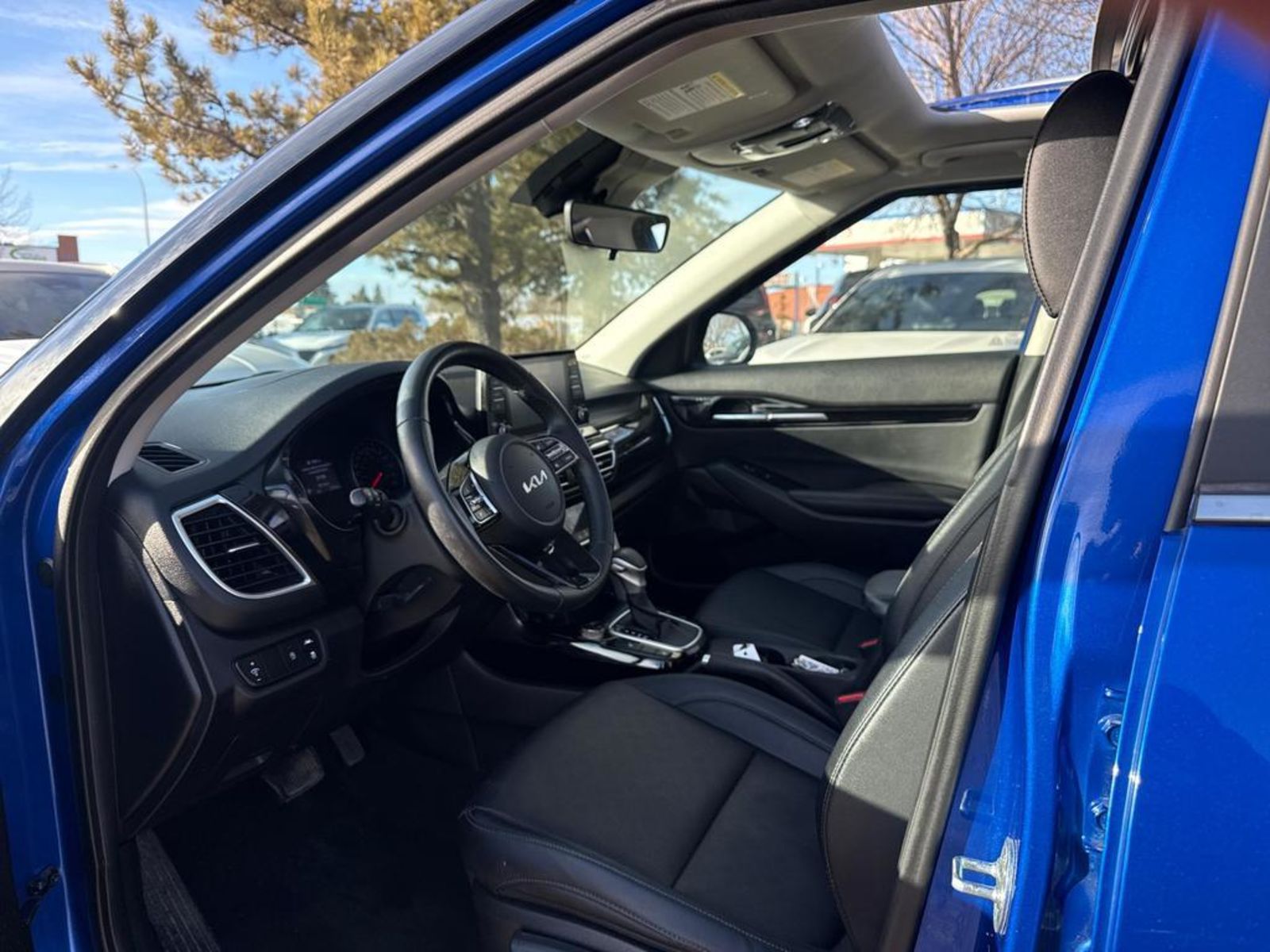 Plus Taxes & LicensingRecently Arrived!!! 2023 Kia Seltos EXDiscover the perfect blend of style, comfort, and versatility with this pre-owned 2023 Kia Seltos EX AWD in stunning Blue with a sleek Black interior. Powered by a reliable 2.0L MPI I4 engine and Intelligent Variable Transmission, it offers smooth performance and confident handling with full-time AWD and advanced safety features like lane departure prevention and blind spot system.Step inside to heated Sofino leather seats, an 8″ touchscreen audio system with smart device mirroring, and premium touches like a heated steering wheel and automatic climate control for year-round comfort. With spacious seating for five, ample cargo space, and thoughtful convenience features like remote start and keyless entry, this Seltos is ready for your next adventure.Experience peace of mind with a comprehensive suite of safety tech, including forward collision mitigation and a rearview camera. Don’t miss this opportunity to drive home a well-equipped, dependable compact SUV that fits your lifestyle perfectly. Visit Go Kia South today to take it for a test drive!IN HOUSE FINANCING, IN HOUSE LEASING AVAILABLE O.A.C.If you are interested and need more information call or message our sales team, we will be glad to help you now!!Our knowledgeable sales staff will help assist you with every step. To book a test drive or receive further information give us a call at (780)-465-3535 or email us: kiahmed@gokia.caAt Go Kia, we’re happy to help! Proudly serving Edmonton and all of Alberta including St. Albert, Wetaskiwin, Fort McMurray, Grande Prairie, Drayton Valley, Nisku, Leduc, Rimby, Hinton, St. Paul, Lloydminster, Edson, and all of Western Canada!An AMVIC Licensed Business. Value Priced vehicles are aggressively priced and may require some additional mechanical or cosmetic repairs, all disclosed on a Vehicle Assessment Report! This vehicle may be leased or financed by anyone*, however, due to the recent increase in fraudulent vehicle purchase activity, Go Kia reserves the right to decline a transaction on suspicion of non-retail intentions including but not limited to wholesaling or exporting. *on approved credit, see dealer for details