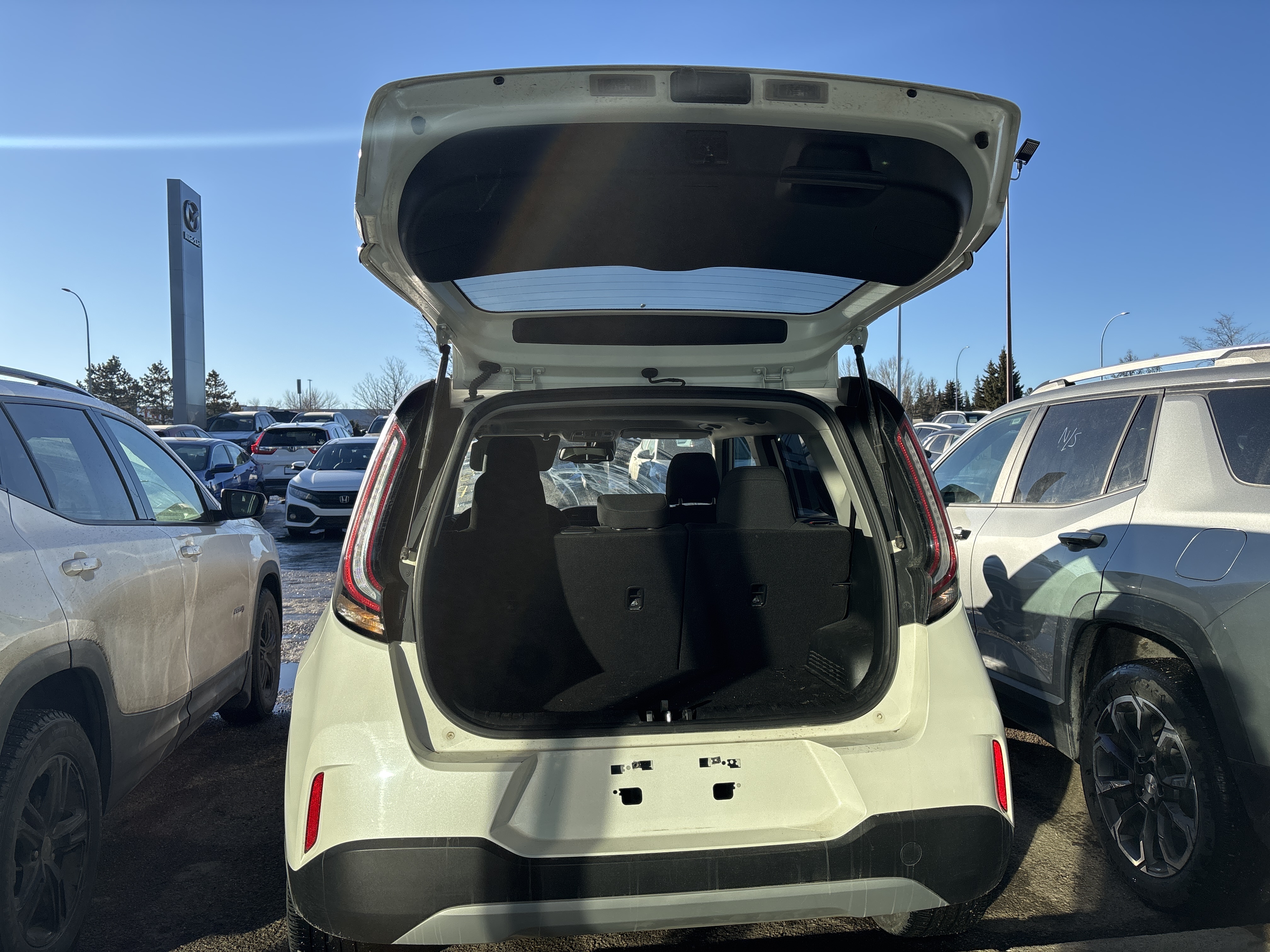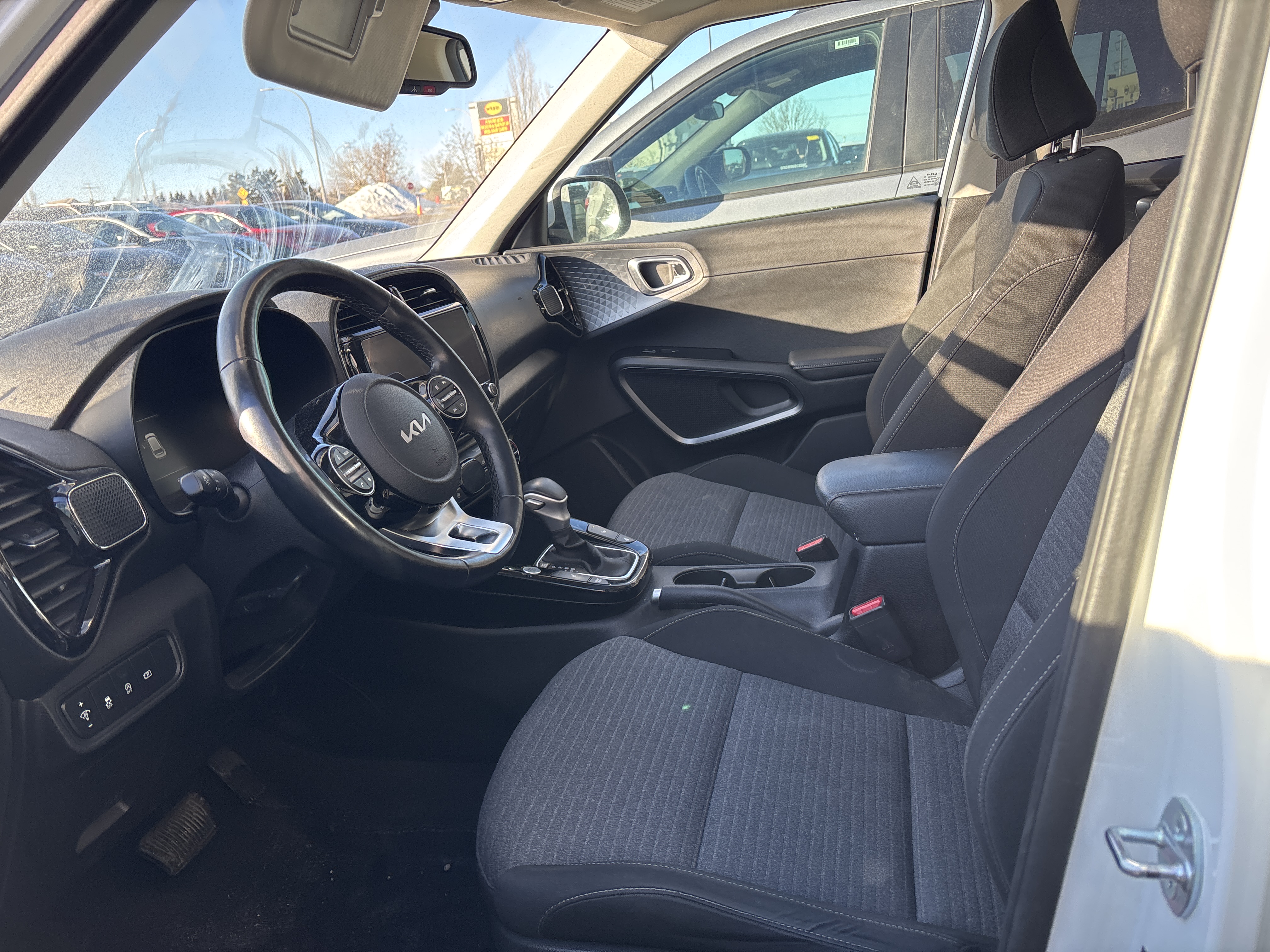 **Jazzed about a vehicle that’s fresh off the lot and ready to groove?** Well, my friends, gather around and lend an ear, for I have a tale of the Kia Soul EX Premium that’s so enthralling, you might just spill your scotch. Imagine, if you will, a gleaming White chariot that casts a glow under the cool neon of Sherwood Park’s city lights. No Accidents. CLEAN CARFAX. NAV, Backup Camera, Cruise Control, Heated Steering Wheel, Auto Start/Stop, Heated Front Seats, Sunroof, Cloth Upholstery, Forward Collision Alert, A/C, Power Windows/Locks/Mirrors, Tilt/Telescopic Steering Wheel, Blind Spot Sensor, Lane Departure Warning, Traction Control, Keyless Remote, Auto Rain Sensing Wipers, Dual Zone A/C, Rear Cross Traffic Alert, LED Headlights/Taillights, Rear Window Defrost, Alloy Wheels, AM/FM/XM Radio, USB Input, Apple CarPlay & Android Auto.