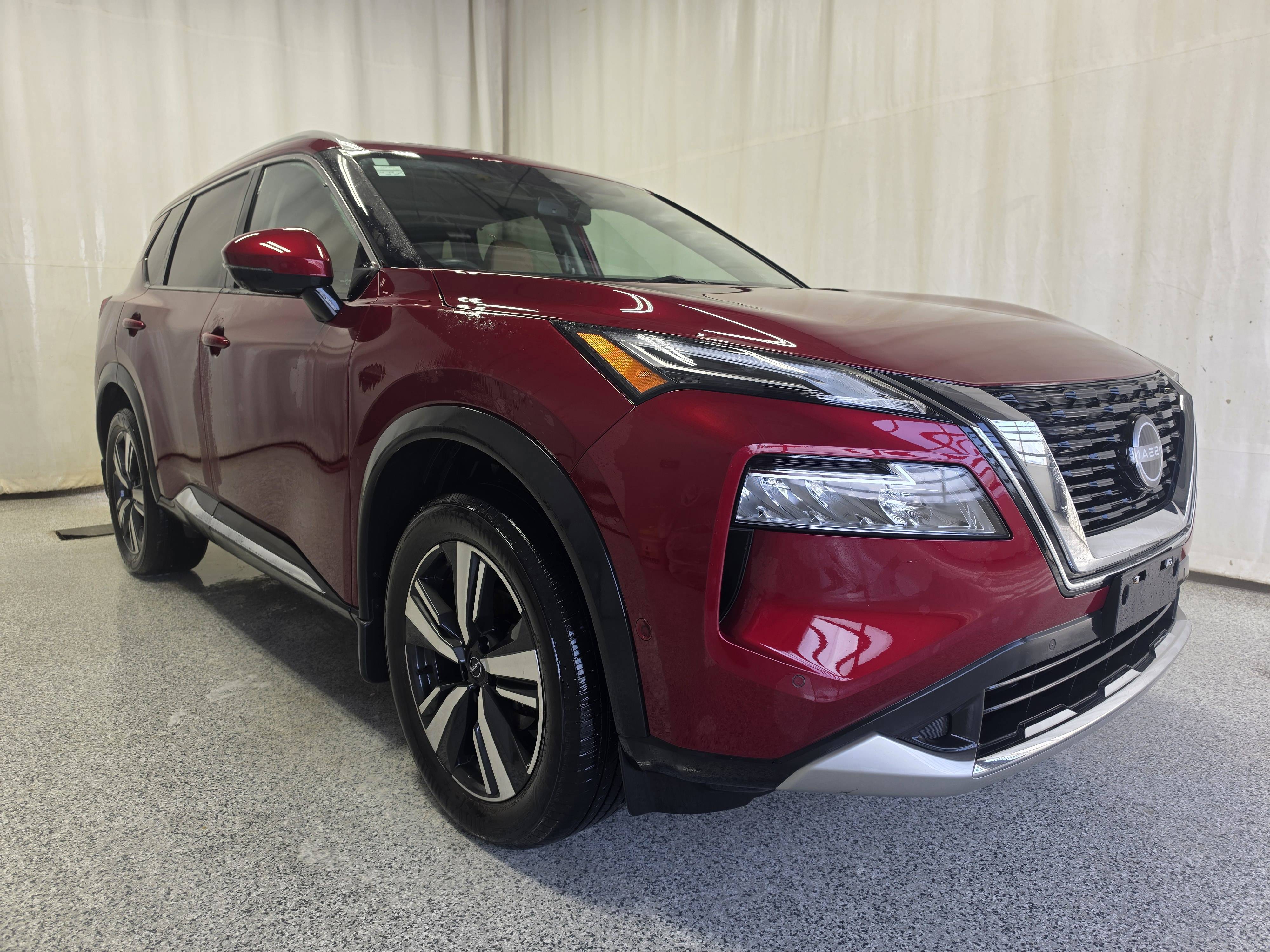 **Ready to feel like royalty on the road, my friends? Feast your eyes on this marvel of engineering – the 2023 Nissan Rogue Platinum!** With a dazzling Red exterior that would even make a stop sign blush with envy, this pre-owned jewel combines class with performance under that hood, where a spirited 3-cylinder engine powers up this chariot. Yes, an Automatic Transmission makes every journey as smooth as my jazz vinyl collection. Low Kilometers. Remote Start, NAV, Backup Camera, Memory Seat, Heated Steering Wheel, Heated Front Seats, 360 View Camera, HUD, Auto Start/Stop, Bluetooth, Dual Moonroof, Adaptive Cruise Control, Front Parking Aid, Forward Collision Alert, Roof Rails, Rear Parking Aid, Power Front Seats, Rear Heated Seats, A/C, Power Windows/Locks/Mirrors, Blind Spot Sensor, Keyless Remote, Electronic Park Brake, Auto Hold, Dual Zone A/C, Lane Keep Assist, Rear Cross Traffic Alert, Paddle Shifter, Power Trunk, LED Headlights/Taillights, Rear Window Defrost, Alloy Wheels, AM/FM/XM Radio, Steering Wheel Audio Controls, USB Input, Apple CarPlay & Android Auto.