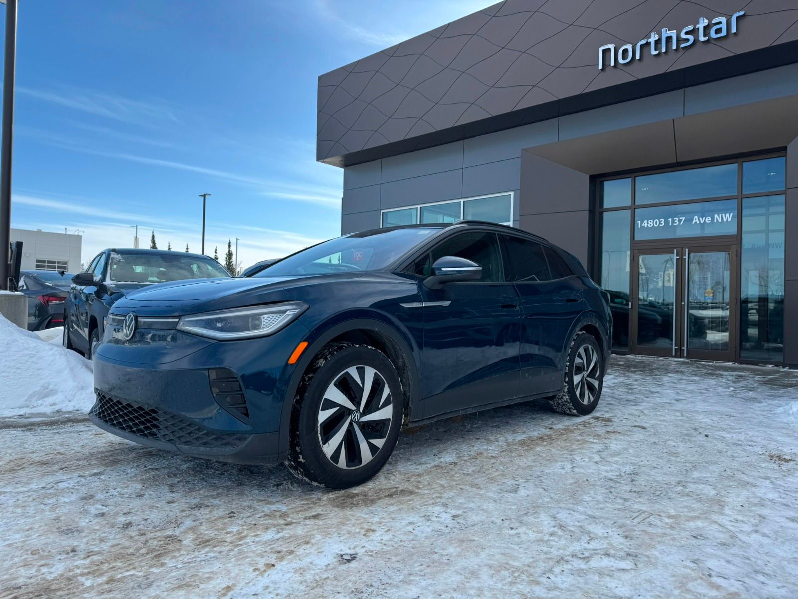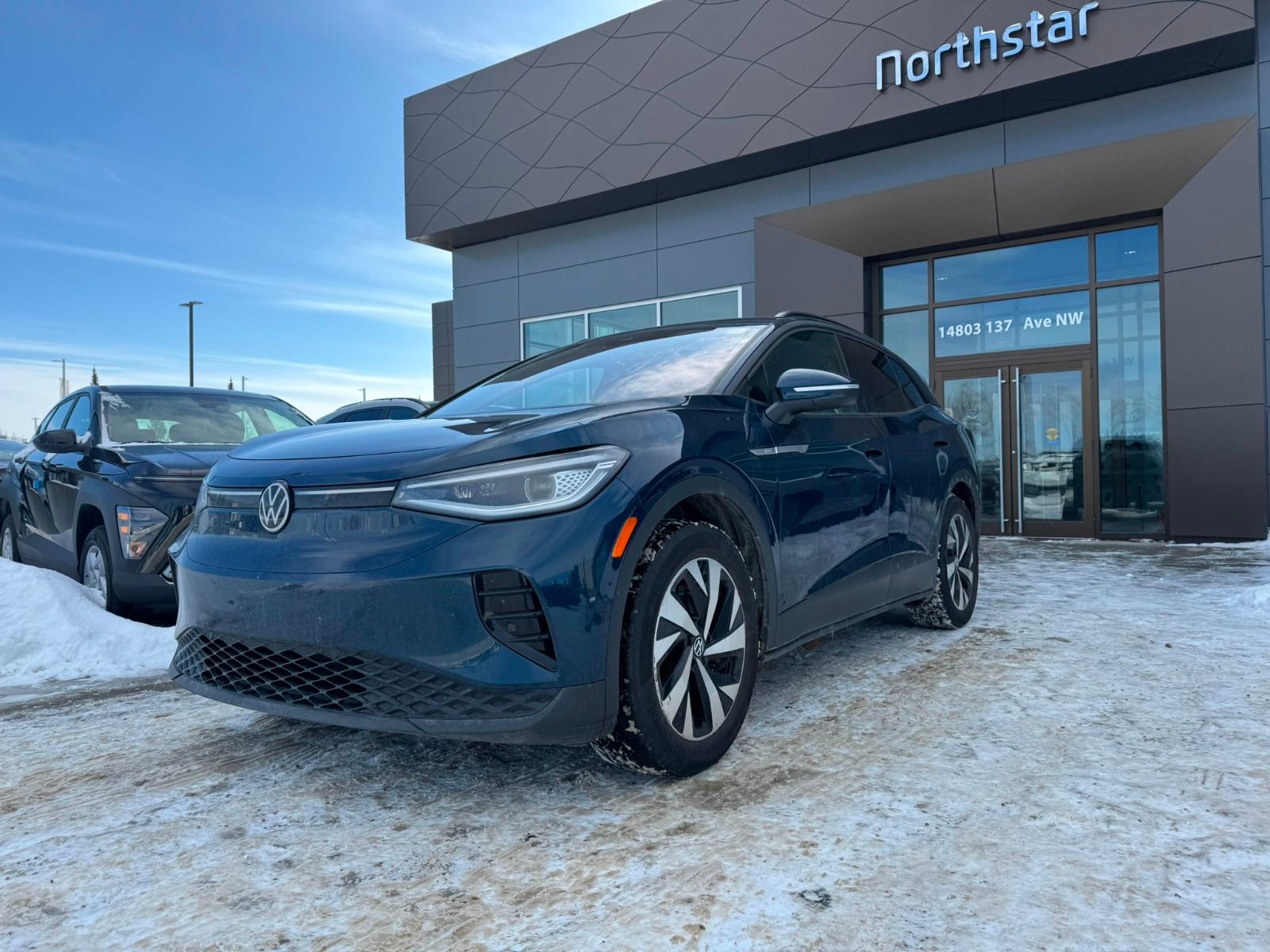 Discover electric driving with this pre-owned 2023 Volkswagen ID.4 RWD in striking Blue. Powered by a single electric motor with a smooth single-speed automatic transmission, it offers a quiet and efficient ride enhanced by a 4.39 axle ratio and rear-wheel drive. Inside, enjoy heated front seats with comfortable cloth/leatherette surfaces, dual-zone automatic climate control, and a spacious 5-passenger cabin. Stay connected and confident with a 12-inch touchscreen featuring integrated navigation, adaptive cruise control with stop & go, and advanced safety including lane departure prevention and active blind spot monitoring. With regenerative braking, LED headlights, and a ZEV emissions rating, this ID.4 blends eco-friendly innovation with modern convenience perfectly. Experience zero-emission driving—schedule your test drive today!AMVIC Licenced business Interested? Need more information? Contact our Internet sales team at info@northstarhyundai.ca, call us at 780-478-7669, or come on in! Northstar Hyundai is located at 14803 137 Ave NW, Edmonton, AB, right on the corner of 137 Ave and St. Albert Trail… you can’t miss us! We are proud to serve Edmonton and the rest of Alberta for 35 years and counting!This vehicle may be leased or financed by anyone*, however, due to the recent increase in fraudulent vehicle purchase activity, Northstar Hyundai reserves the right to decline any form of payment, including but not limited to cash, bank draft, certified cheque, EFT, or credit card. *on approved credit, see dealer for details.