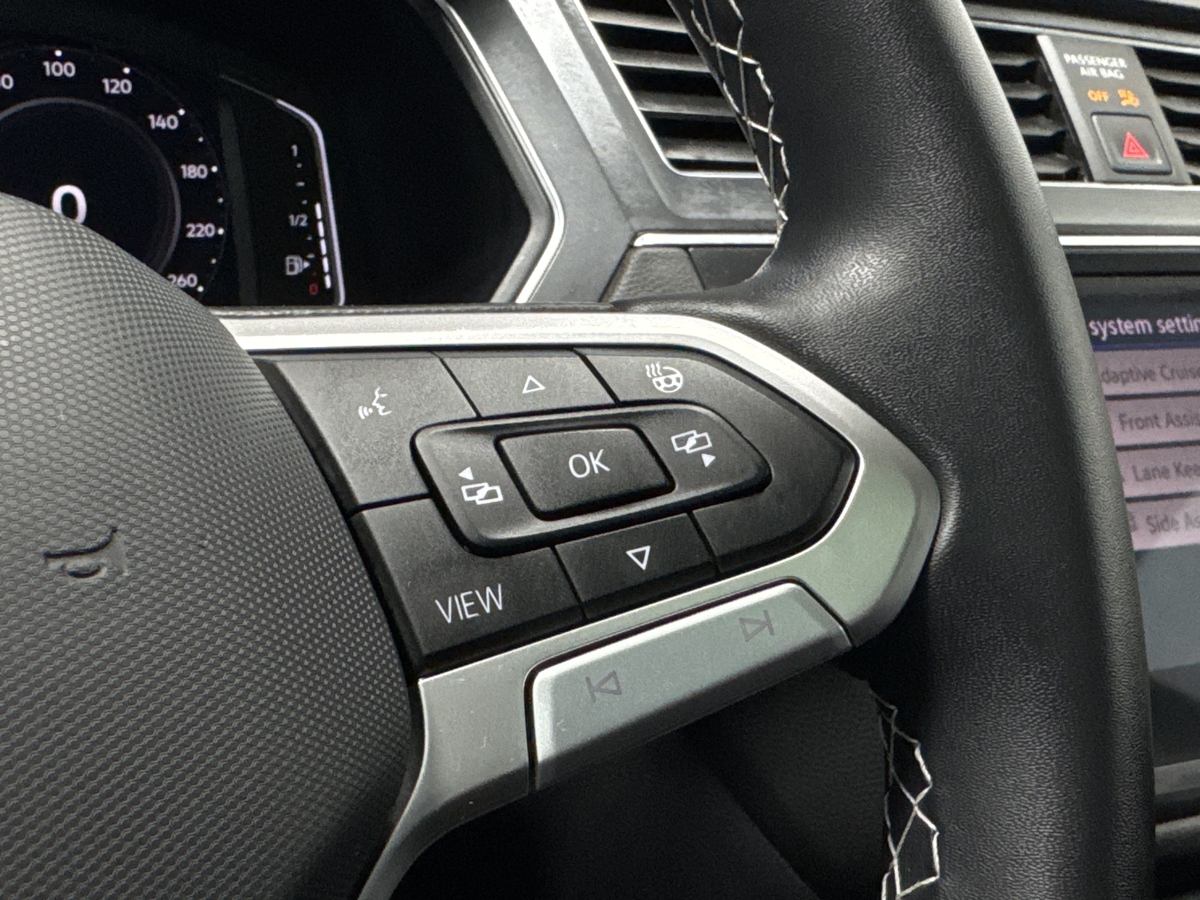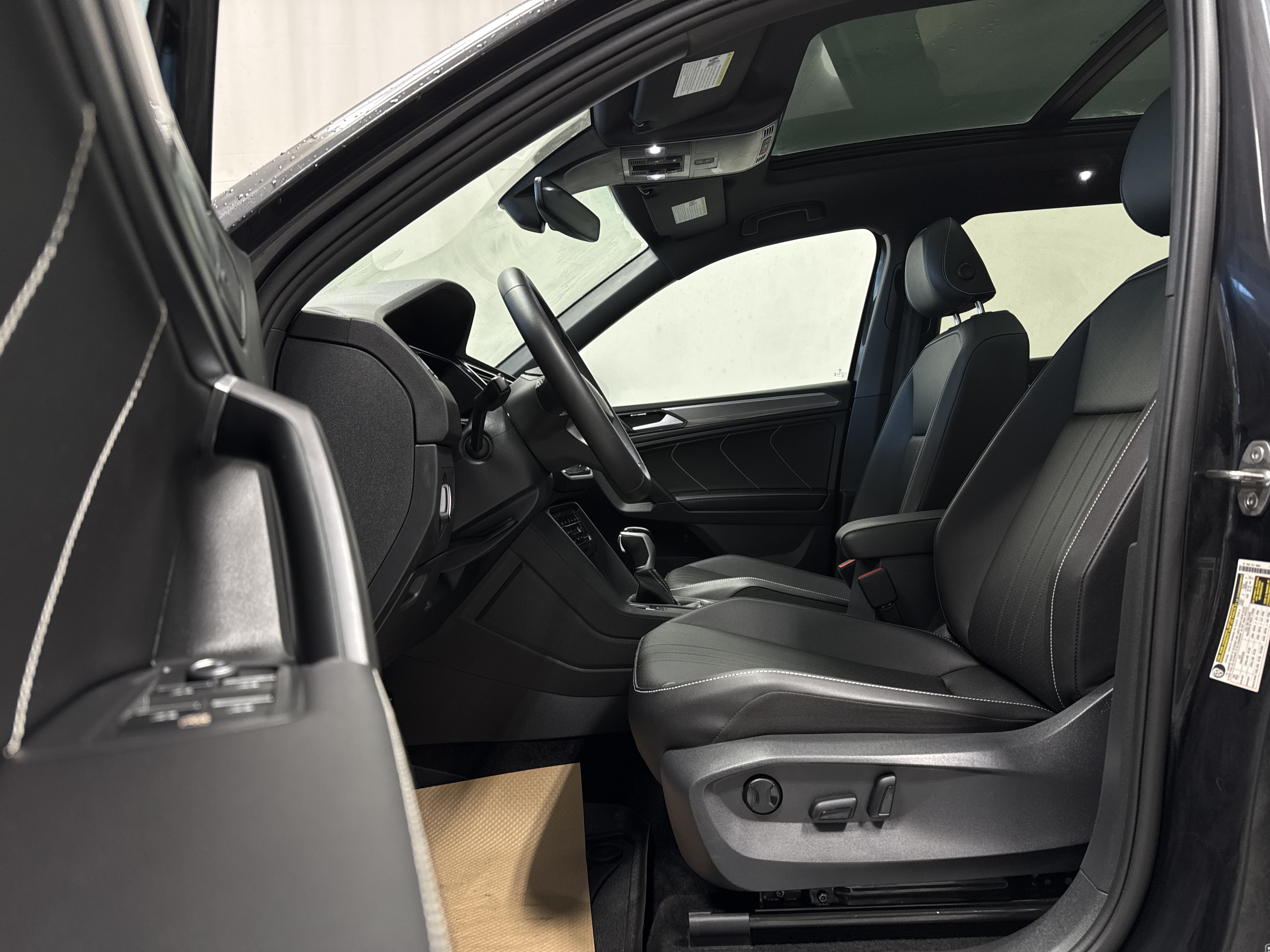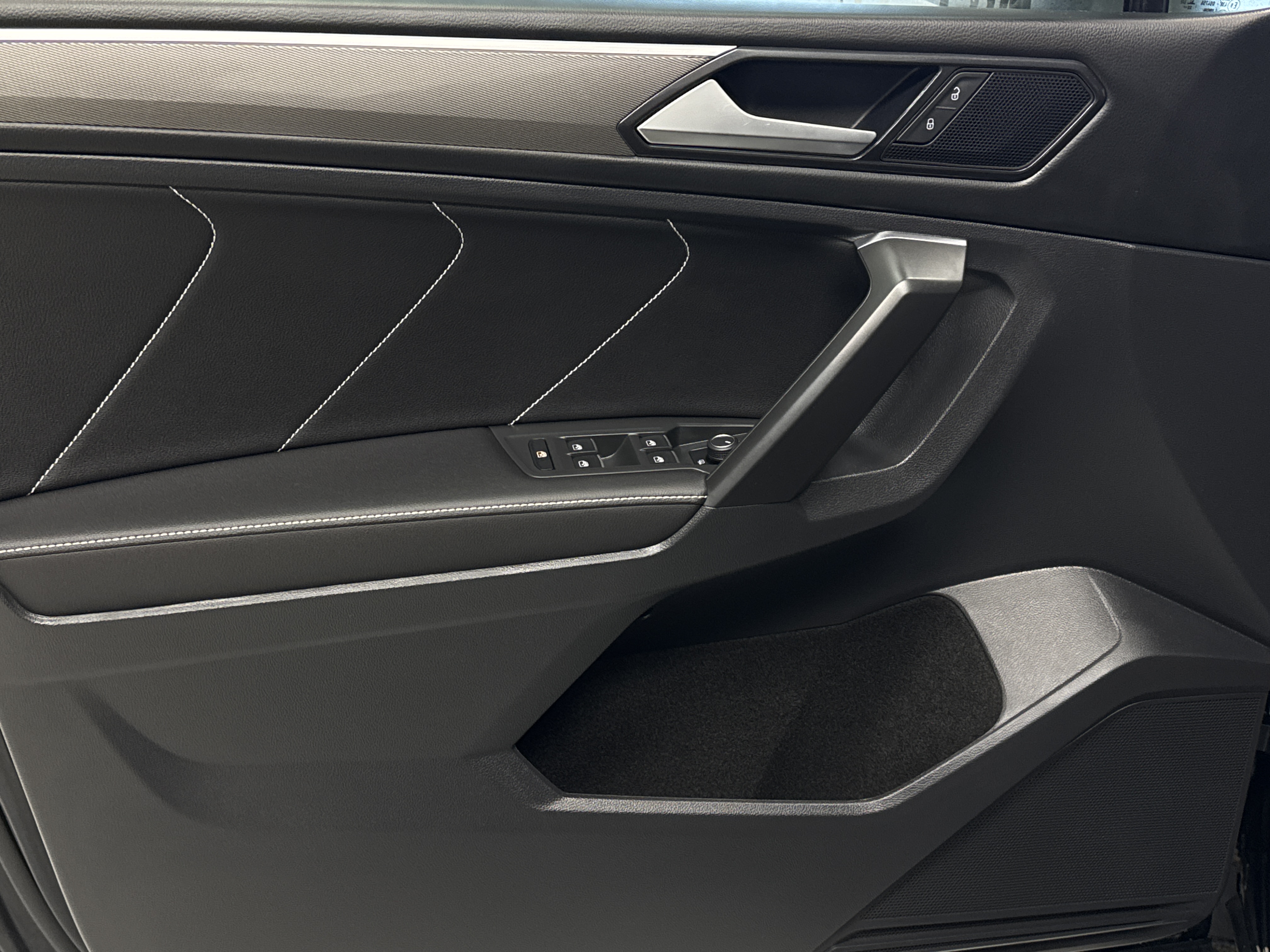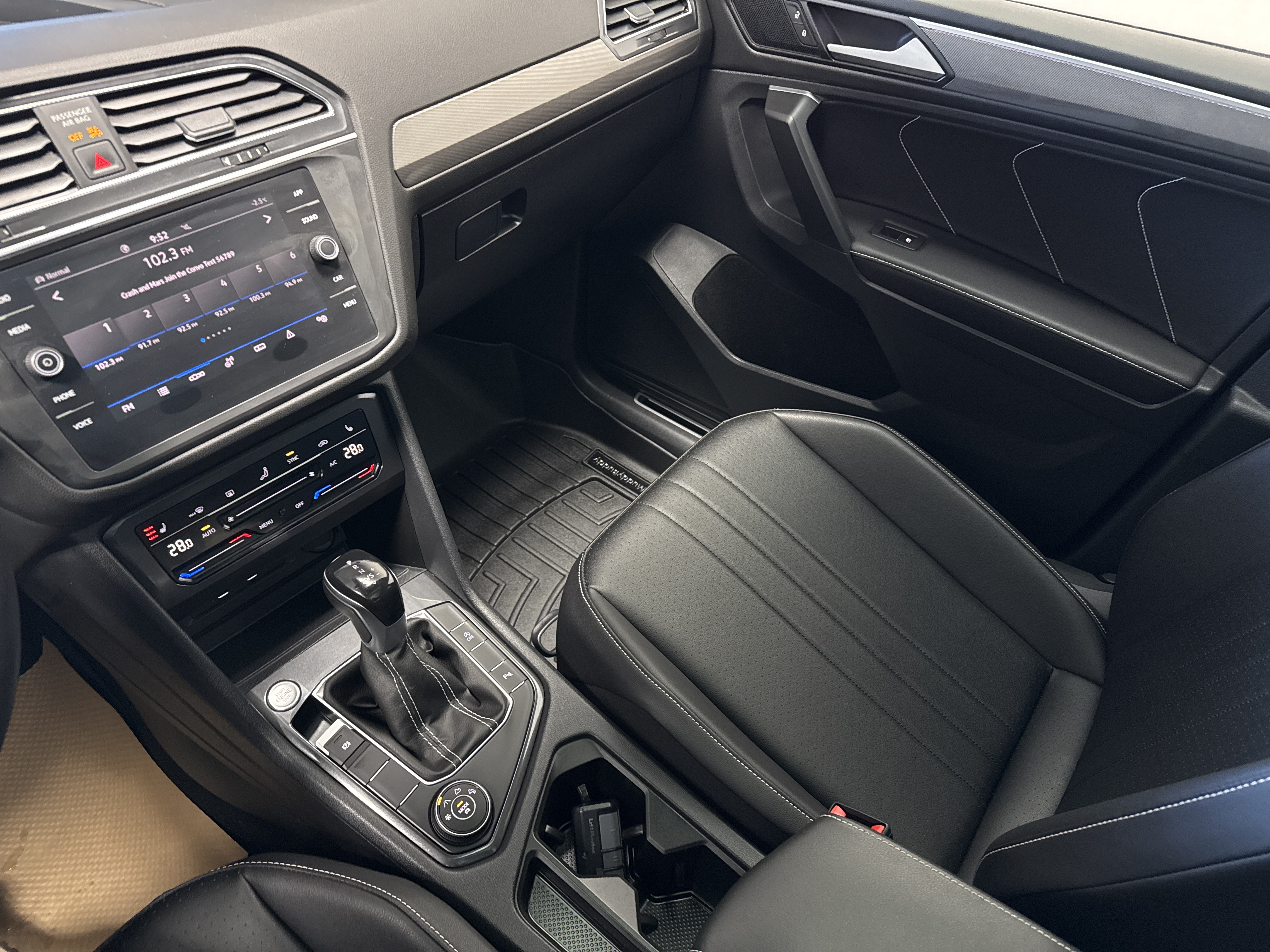 Ah, prepare to be enraptured as I tell you of the LEATHER UPHOLSTERY, which cradles you in luxury, and the PANORAMIC ROOF, just begging for a gaze at the stars. The gods of convenience have graced this Tiguan with ADAPTIVE CRUISE CONTROL, lavish HEATED SEATS, both fore and aft, and an AIR CONDITIONING system with DUAL ZONE climatic prowess.