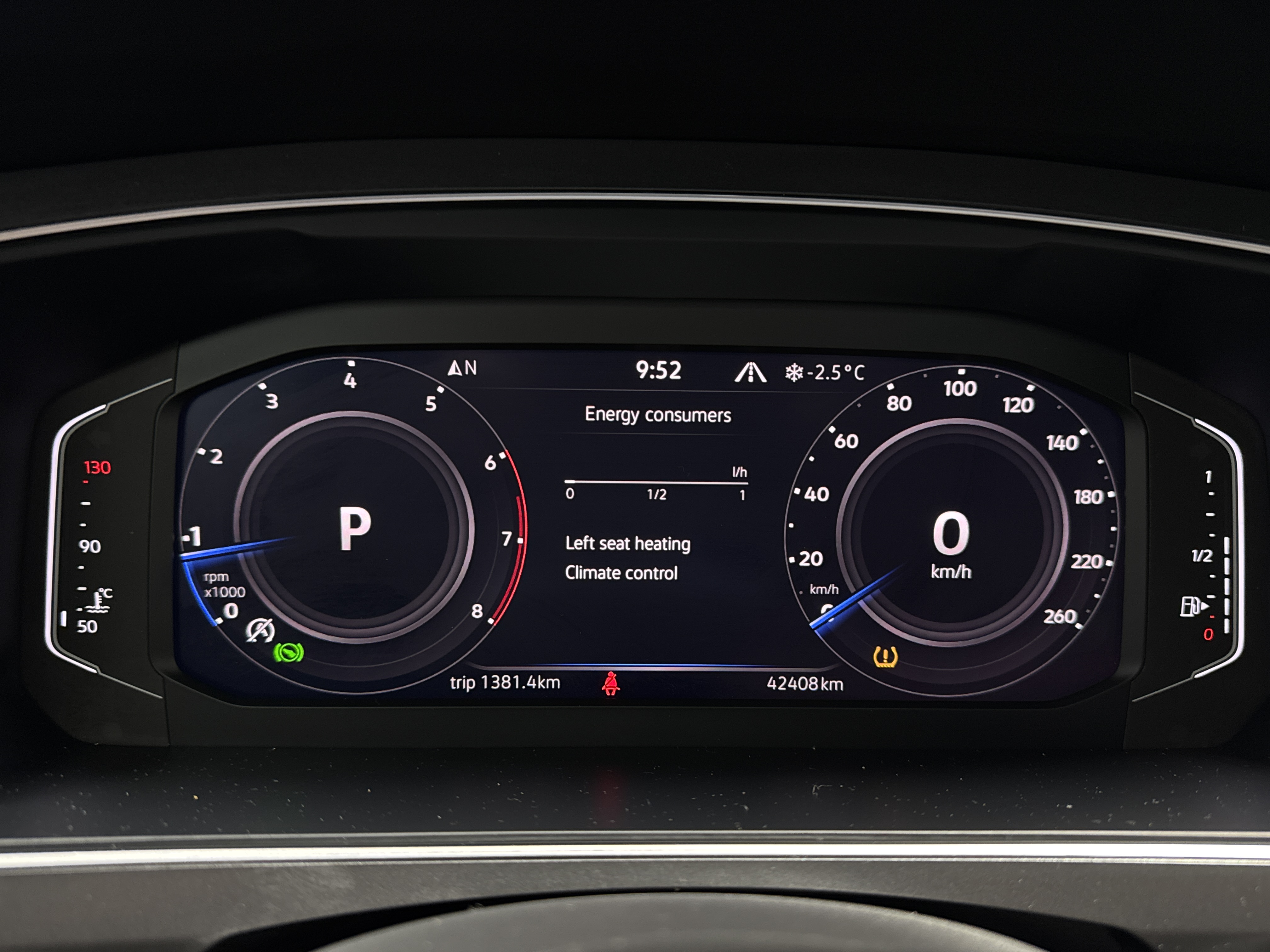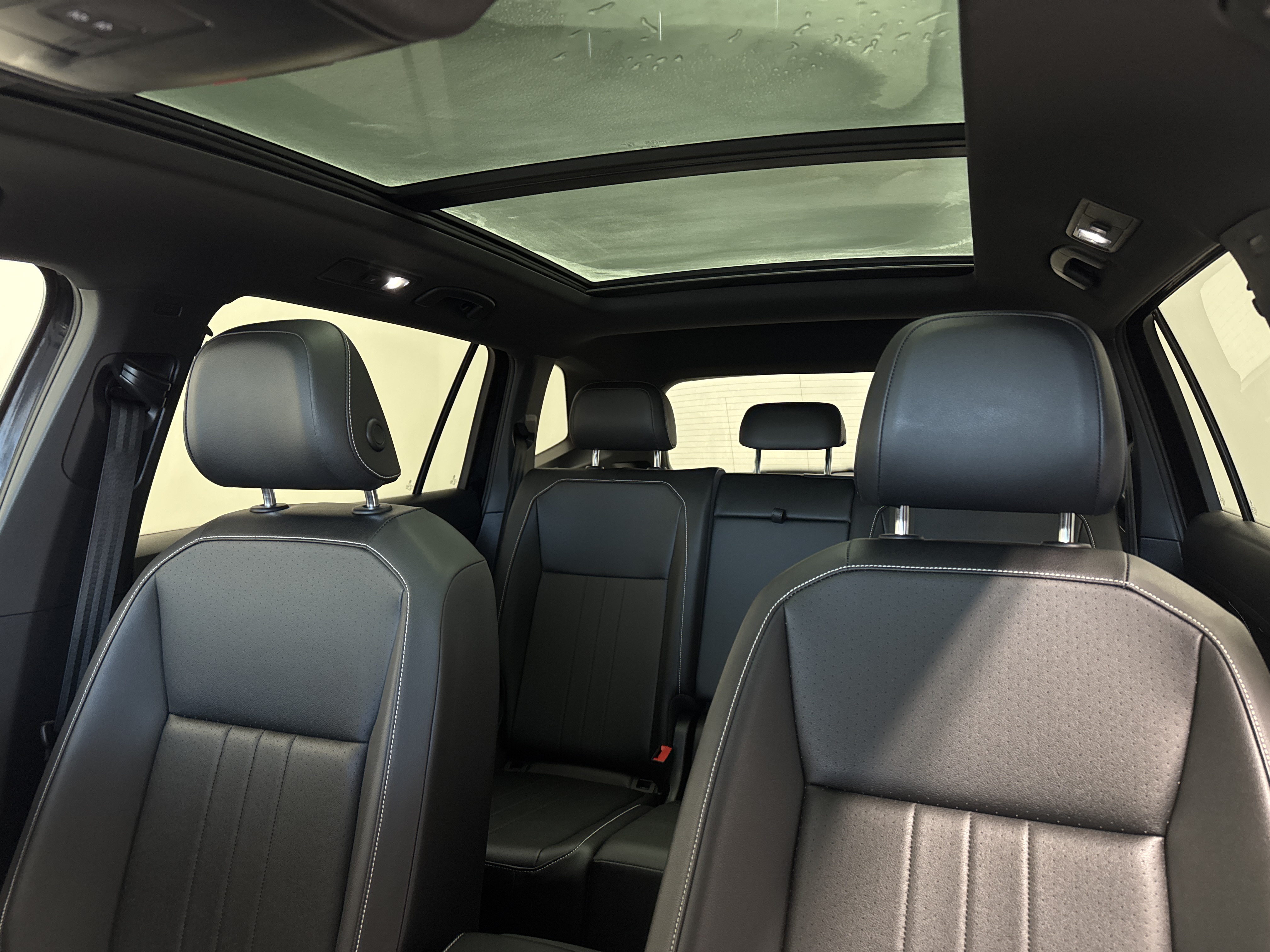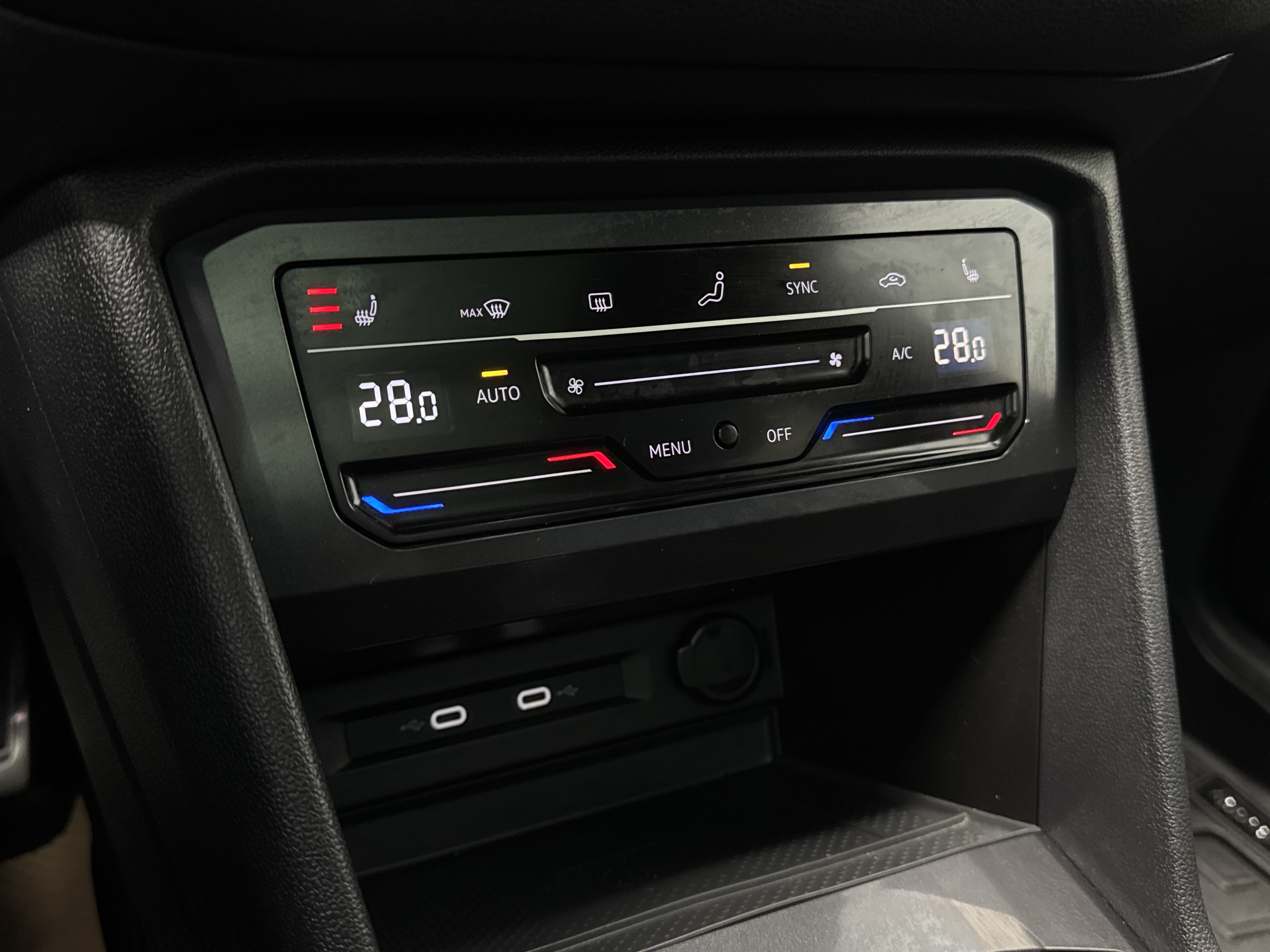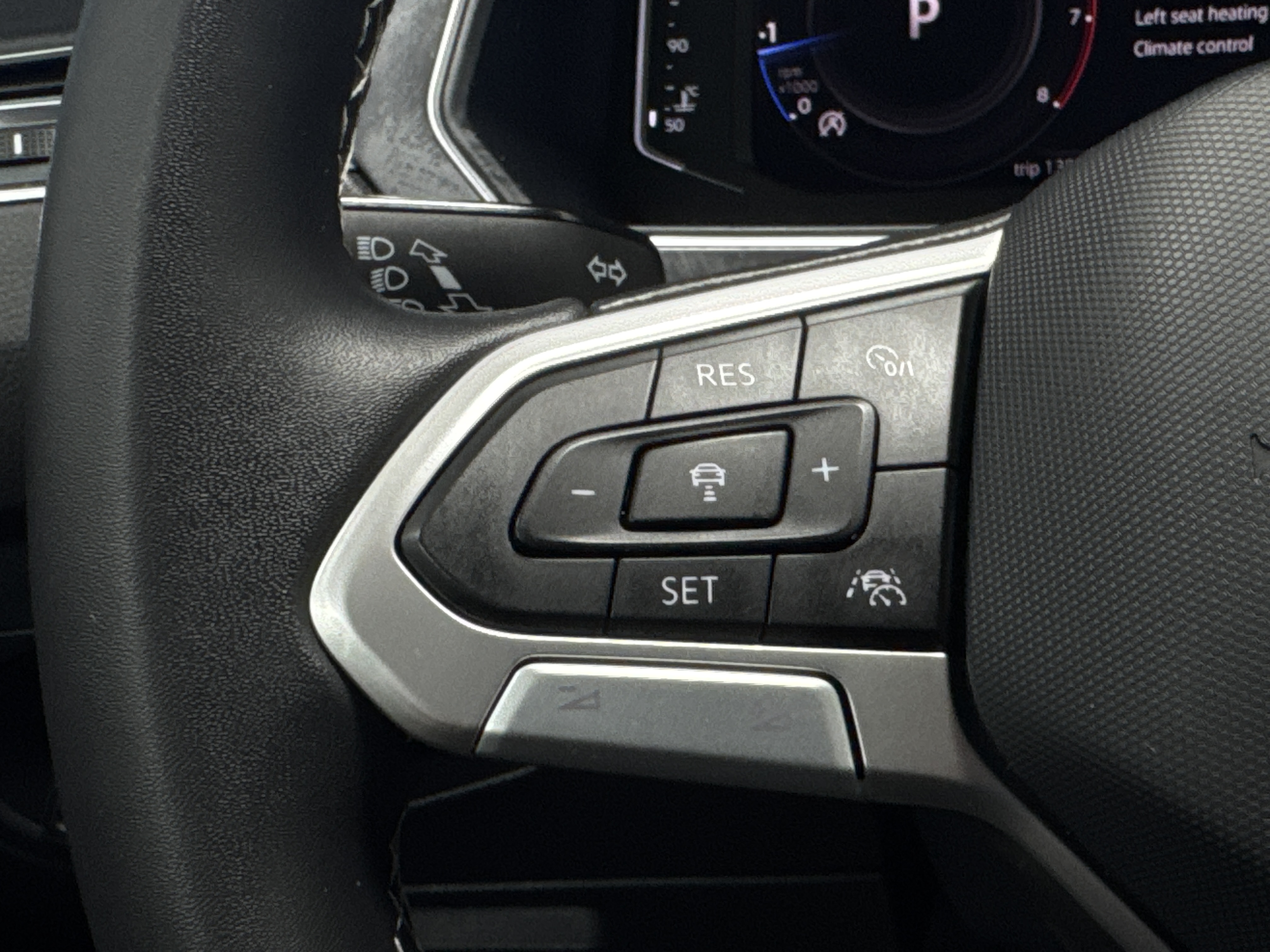 Ah, prepare to be enraptured as I tell you of the LEATHER UPHOLSTERY, which cradles you in luxury, and the PANORAMIC ROOF, just begging for a gaze at the stars. The gods of convenience have graced this Tiguan with ADAPTIVE CRUISE CONTROL, lavish HEATED SEATS, both fore and aft, and an AIR CONDITIONING system with DUAL ZONE climatic prowess.