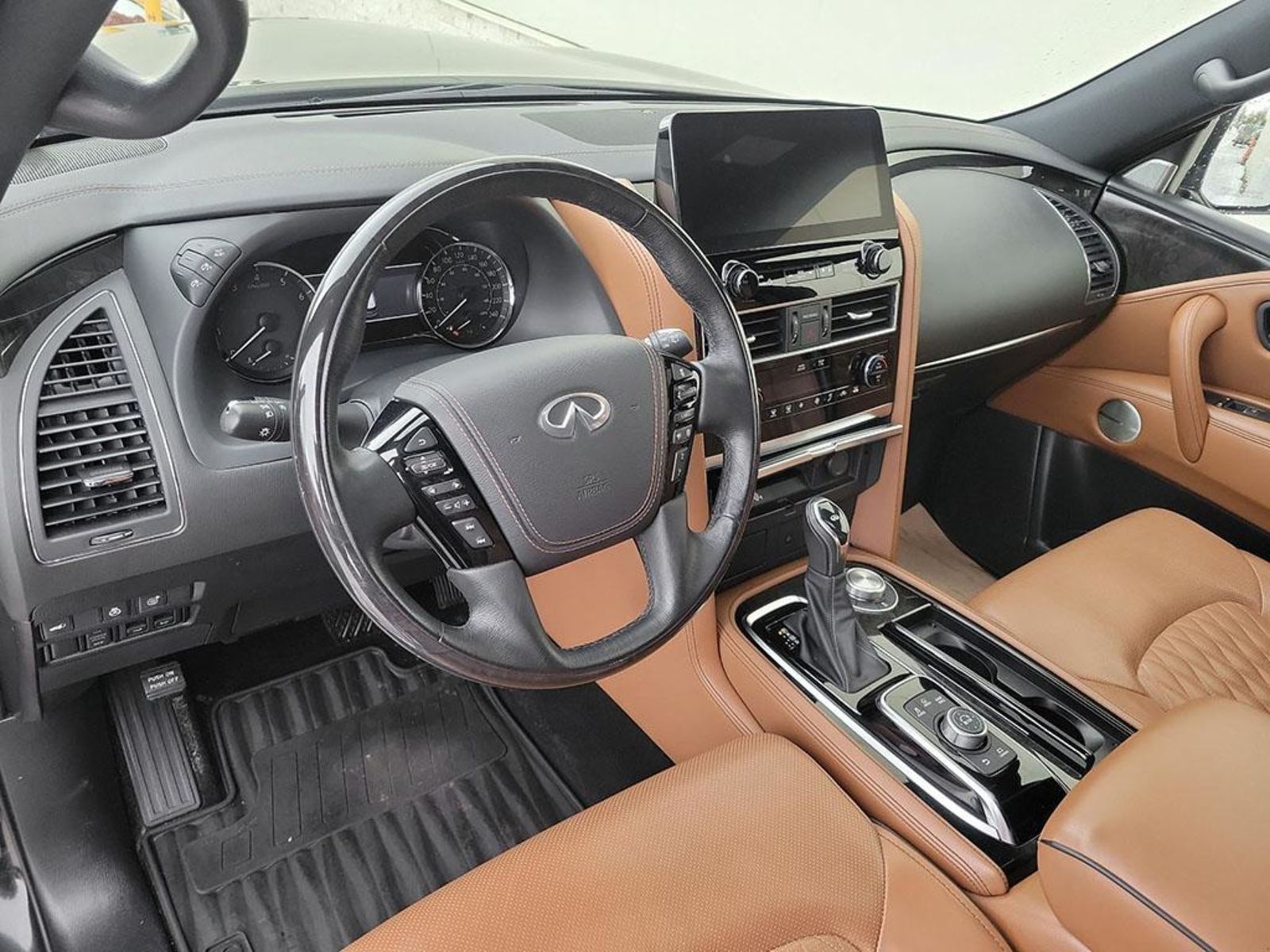 Plus Taxes & LicensingIntroducing the Pre-Owned 2024 INFINITI QX80 ProACTIVE 7-Passenger in sleek Black!Elevate your driving experience with this luxurious and well-equipped SUV. With a plethora of premium features like Leather Seats, Power Sunroof, Navigation System, and Heated Steering Wheel, you’ll enjoy every moment behind the wheel.Stay connected and entertained with features such as Bluetooth Connection, HD Radio, Satellite Radio, and an Entertainment System for the rear passengers. Your safety is paramount with Advanced Safety features like Blind Spot Monitor, Lane Departure Warning, Adaptive Cruise Control, and Automatic Highbeams.This model also boasts impressive performance with its 8 Cylinder Engine, Four Wheel Drive capability, and Adaptive Suspension for a smooth ride on any terrain.Take advantage of this exceptional opportunity to drive home in a sophisticated and capable SUV. Contact us today to schedule a test drive and experience luxury and performance like never before in the 2024 INFINITI QX80 ProACTIVE!