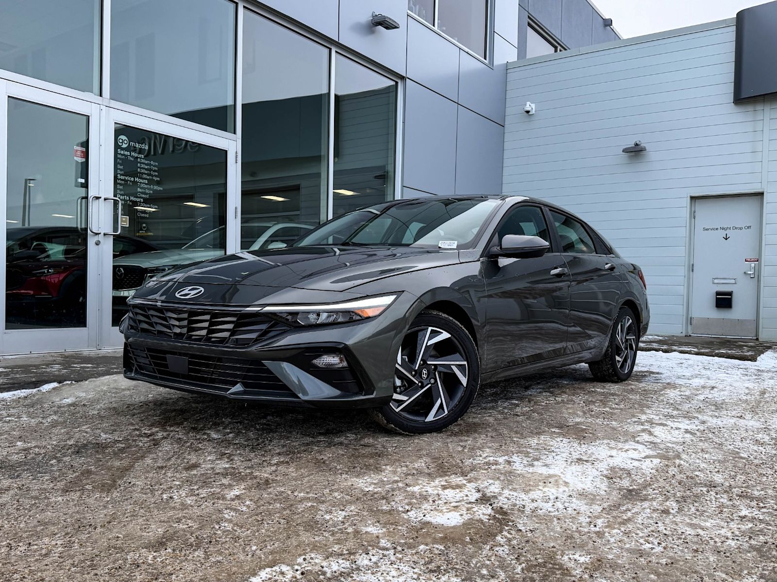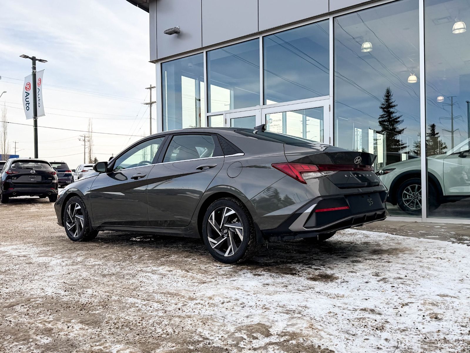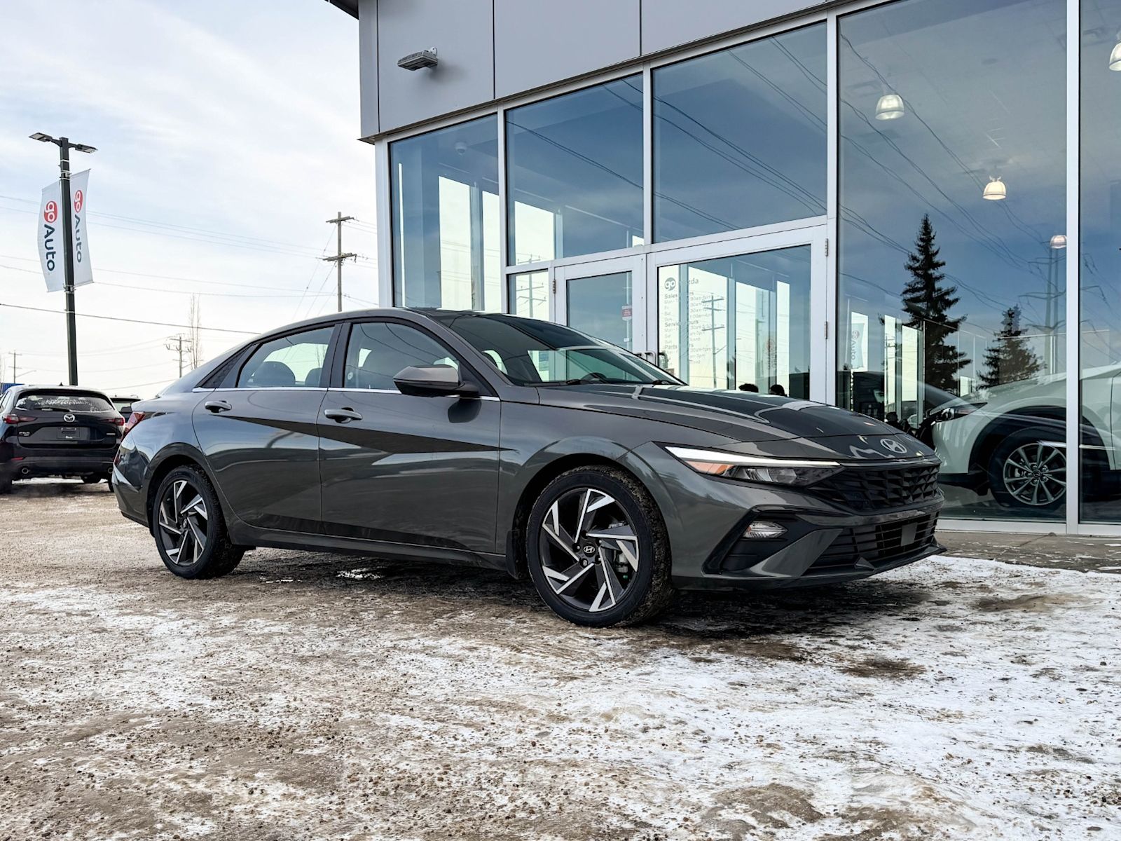 Experience sophistication and efficiency with this pre-owned 2025 Hyundai Elantra Luxury IVT in sleek Gray with a refined Black interior. Powered by a smooth 2.0L MPI DOHC I4 engine paired with Intelligent Variable Transmission, this Elantra delivers responsive performance and excellent fuel economy.Step inside to enjoy luxurious heated leatherette seats, dual-zone automatic climate control, and a premium Bose audio system with an immersive 10.25-inch touchscreen featuring integrated navigation and smart device mirroring. Safety is paramount with advanced features like lane departure prevention, active blind spot system, and forward collision mitigation.Enjoy convenience with smart key push-button start, remote start, power windows, and a panoramic sunroof that lets the outside in. With 17″ aluminum-alloy wheels and LED lighting, this Elantra Luxury combines style, comfort, and modern tech for your daily drive.Visit Go Mazda today to test drive this outstanding 2025 Hyundai Elantra Luxury IVT and elevate your driving experience!Go Mazda is an AMVIC licensed business.Clean CarFax