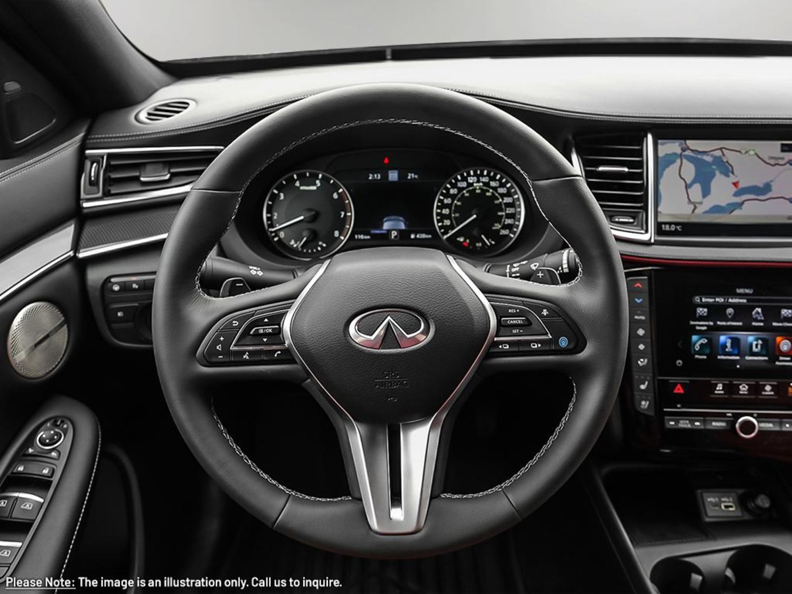 Plus Taxes & LicensingIntroducing the 2025 INFINITI QX50 SPORT AWD – Where Luxury Meets Performance!Elevate your driving experience with the stunning 2025 INFINITI QX50 SPORT AWD in a sleek Grey exterior paired with a striking Red interior. Packed with advanced features and cutting-edge technology, this vehicle is the epitome of luxury and performance.Experience Confidence: Safety is a top priority in the QX50 SPORT AWD, equipped with a comprehensive Air Bag system, Rear Parking Aid, Blind Spot Monitor, Lane Departure Warning, Adaptive Cruise Control, and more to ensure a secure and protected ride.Luxurious Comfort: Step into a world of comfort with amenities like Cooled Front Seats, Heated Steering Wheel, Adjustable Power Seats with Memory Function, and a Panoramic Roof that enhances your driving experience.Intelligent Technology: Stay connected and entertained with features such as a Navigation System, Premium Sound System, Satellite Radio, Bluetooth Connection, and WiFi Hotspot, all seamlessly integrated into the advanced telematics system.Unparalleled Performance: Powered by a Turbocharged 4 Cylinder Engine and All Wheel Drive, the QX50 SPORT AWD delivers a dynamic driving experience with precise handling and exceptional control on any terrain.Dynamic Design: The sleek exterior design is complemented by LED Headlights, Fog Lamps, Rear Spoiler, and Aluminum Wheels, making a bold statement on the road while enhancing visibility and style.Seamless Connectivity: With features like Remote Engine Start, Power Liftgate, Keyless Entry, and Universal Garage Door Opener, the QX50 SPORT AWD ensures convenience is always at your fingertips.The 2025 INFINITI QX50 SPORT AWD is not just a vehicle; it’s a lifestyle upgrade that combines luxury, performance, and innovation to create an unparalleled driving experience. Don’t miss your chance to experience the future of automotive excellence – visit us today to test drive your new companion on the road!
