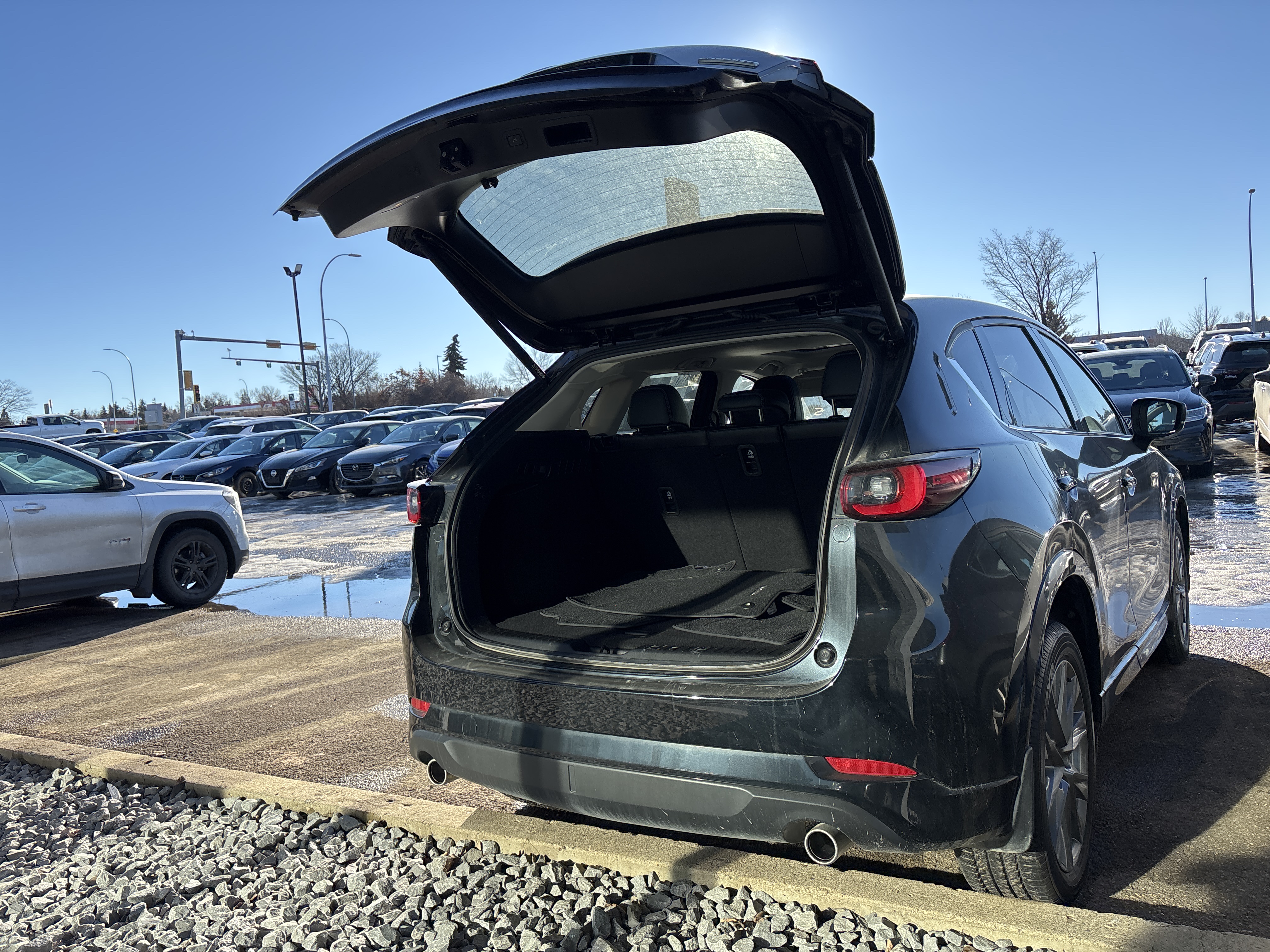 Gentlemen, can you believe your eyes, a sleek and imposing Black 2025 Mazda CX-5 GT? This marvel is not just any vehicle; it’s the embodiment of style cloaked in the deepest of blacks, waiting to turn heads on every corner of Sherwood Park, AB. With only 5,274 Kilometers on the odometer, it whispers tales of brief, joyous sojourns, awaiting more adventures with its next illustrious proprietor.