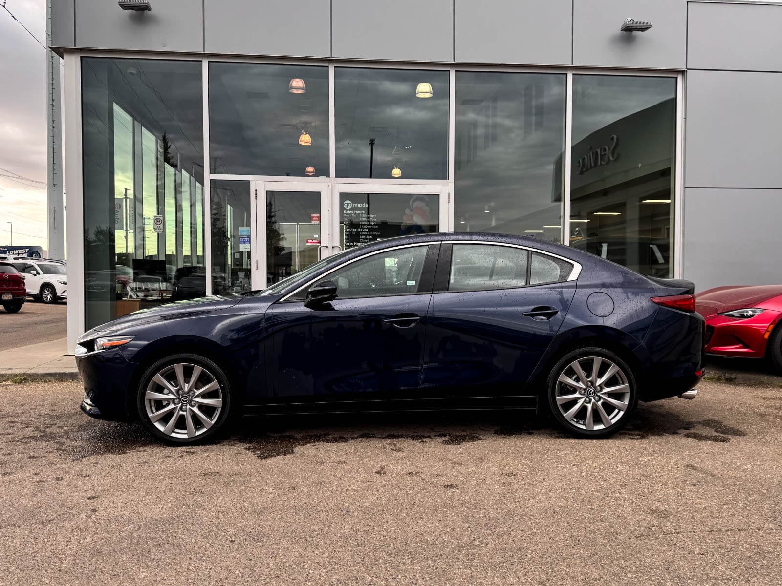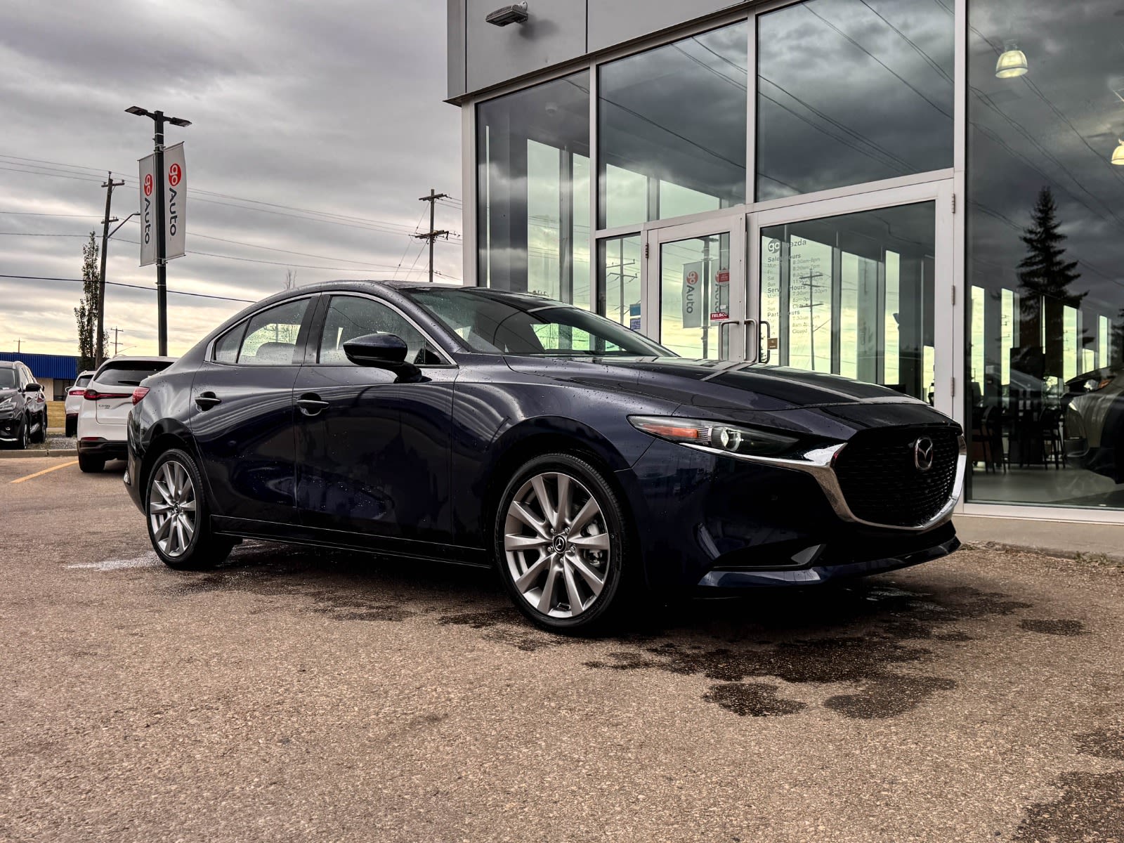 Plus Taxes & LicensingElevate your driving experience with our pre-owned 2025 Mazda Mazda3 GT GT Auto FWD in Blue! Packed with premium features to make every drive a pleasure, this Mazda3 offers unparalleled comfort, safety, and technology.Equipped with advanced safety features like Automatic Emergency Braking, Lane Keeping Assist, and Blind Spot Monitoring, you can drive with confidence knowing you’re protected on the road. Stay connected with the integrated telematics system, Bluetooth connectivity, and Smart Device Integration for seamless communication on the go.Relish the luxury of the leather seats and heated steering wheel while enjoying the convenience of features like Keyless Start, Universal Garage Door Opener, and Rear Parking Aid. The Heads-Up Display and Adaptive Cruise Control add a touch of sophistication to your driving experience.Don’t miss out on this exceptional deal! Contact us today to schedule a test drive and experience the luxury and performance of the 2025 Mazda Mazda3 GT GT Auto FWD for yourself.Go Mazda is an AMVIC licensed business.Please note: this vehicle was previously used as a Rental.